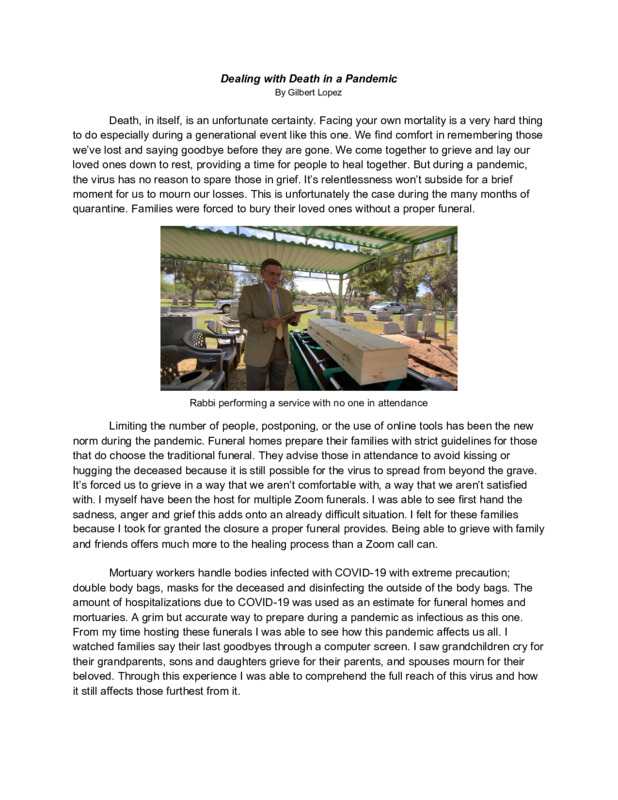 It describes how funerals have changed since the start of the pandemic. I submitted it because I think people need to see how big this viruses reach is and how it can affect everyone.
