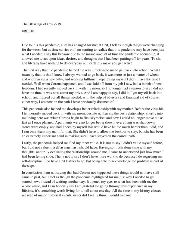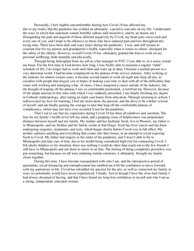 I submitted how the Corona Pandemic has helped change my life for the better.