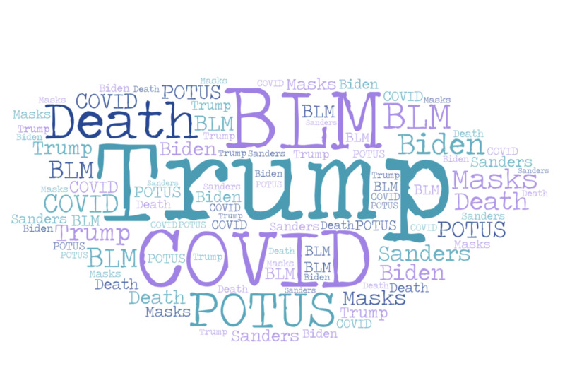 This is a piece of word cloud art where I fed in every major word I used in every major conversation I've had with friends and family. This truly captures what life is like in the United States in 2020.