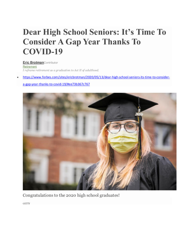 This is an oped advice piece from a financial expert advising this year's high school graduates to take a gap year. He suggests travel, earning money, taking classes, and staying positive