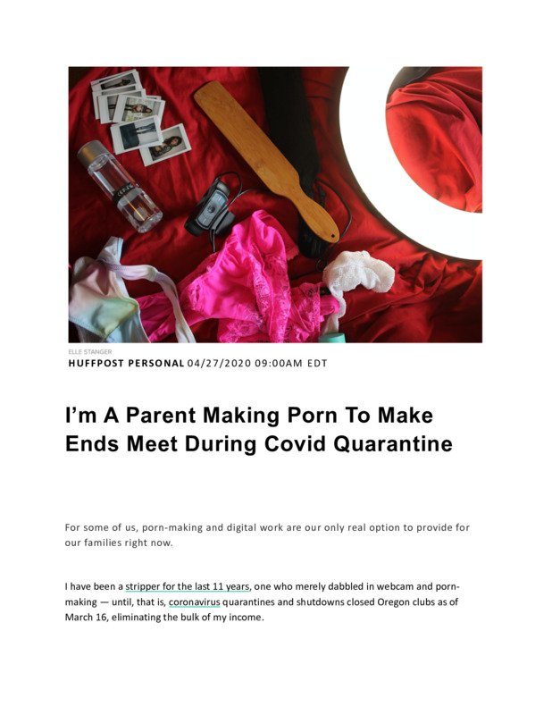 This is an article about a mother who was a stripper before the clubs had to close due to COVID laws. Now she is using porn to pay her bills while in quarantine. She does webcam work along with sexting and other things.