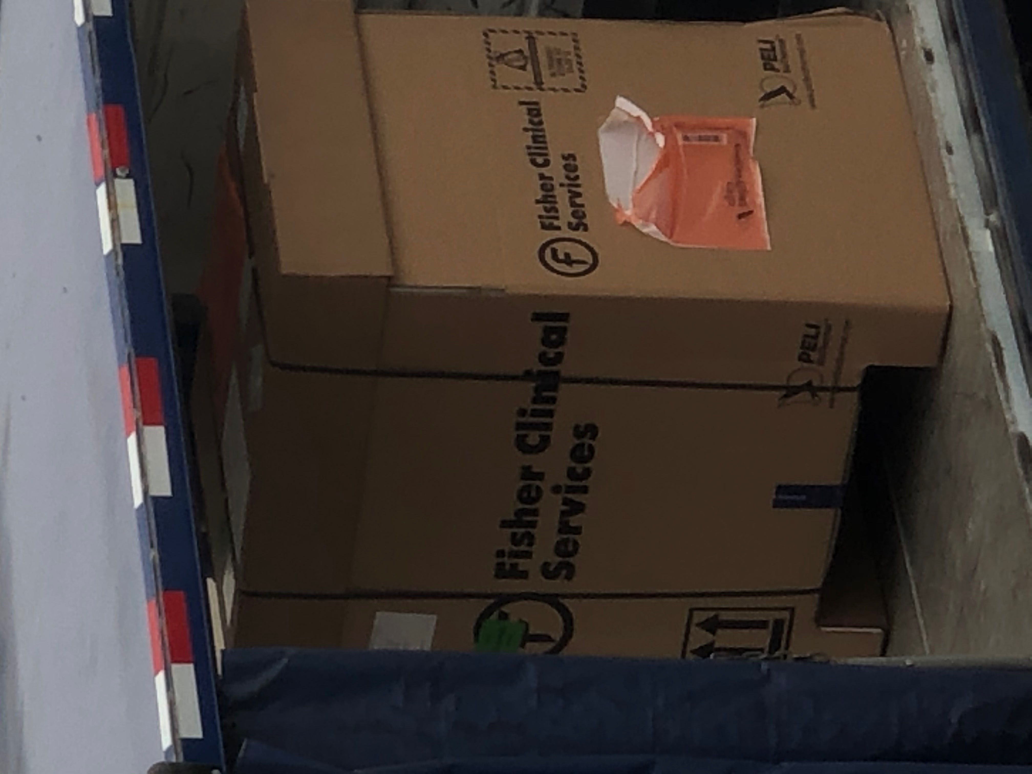 This image shows medical supplies being transported by plane. This text was captioned, "Looking out the window of my flight, only 70 people on the plane but it looks like they have carts of freight. This looks medical." The load manifest informed that there was 4600 lbs. of medical supplies on the flight. My dad and his friends have been transporting medical supplies and people in the medical field. The airlines are moving necessary items and people to where help is needed.