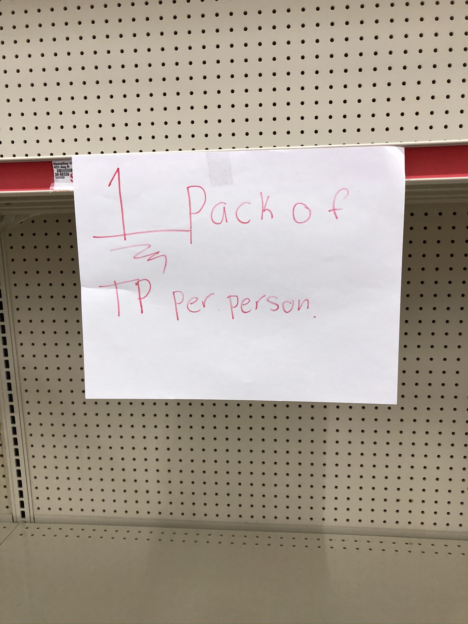 This empty shelf has become emblematic of a serious disruption in the Toilet Paper supply chain. After shopping in 5 stores, this is what i found. this is so frustrating because we are towed in the media that there is no shortage of toilet paper but it is still difficult to find.