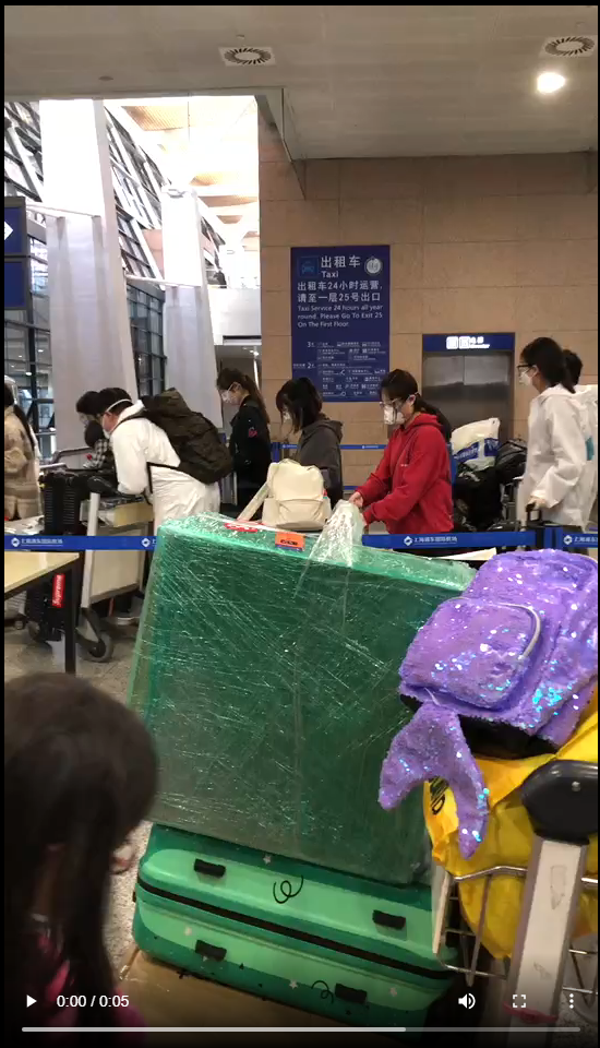 After the tiresome testings and form fillings, I was lead to the side doors of the airport. The blue banners mark different districts and areas in Shanghai, and I followed the path towards my area: Minhang. At the waiting area, almost everyone had a facial mask on and showed no skin except for the face. Some passengers ever wore a one-piece white "sheet cover", usually seen worn by hospital staff.