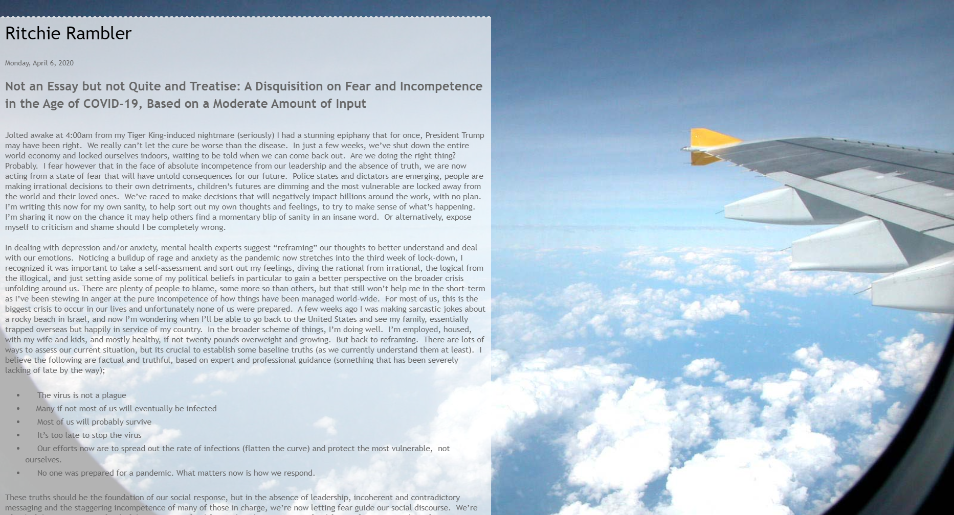 Not an Essay but not Quite and Treatise: A Disquisition on Fear and Incompetence in the Age of COVID-19, Based on a Moderate Amount of Input