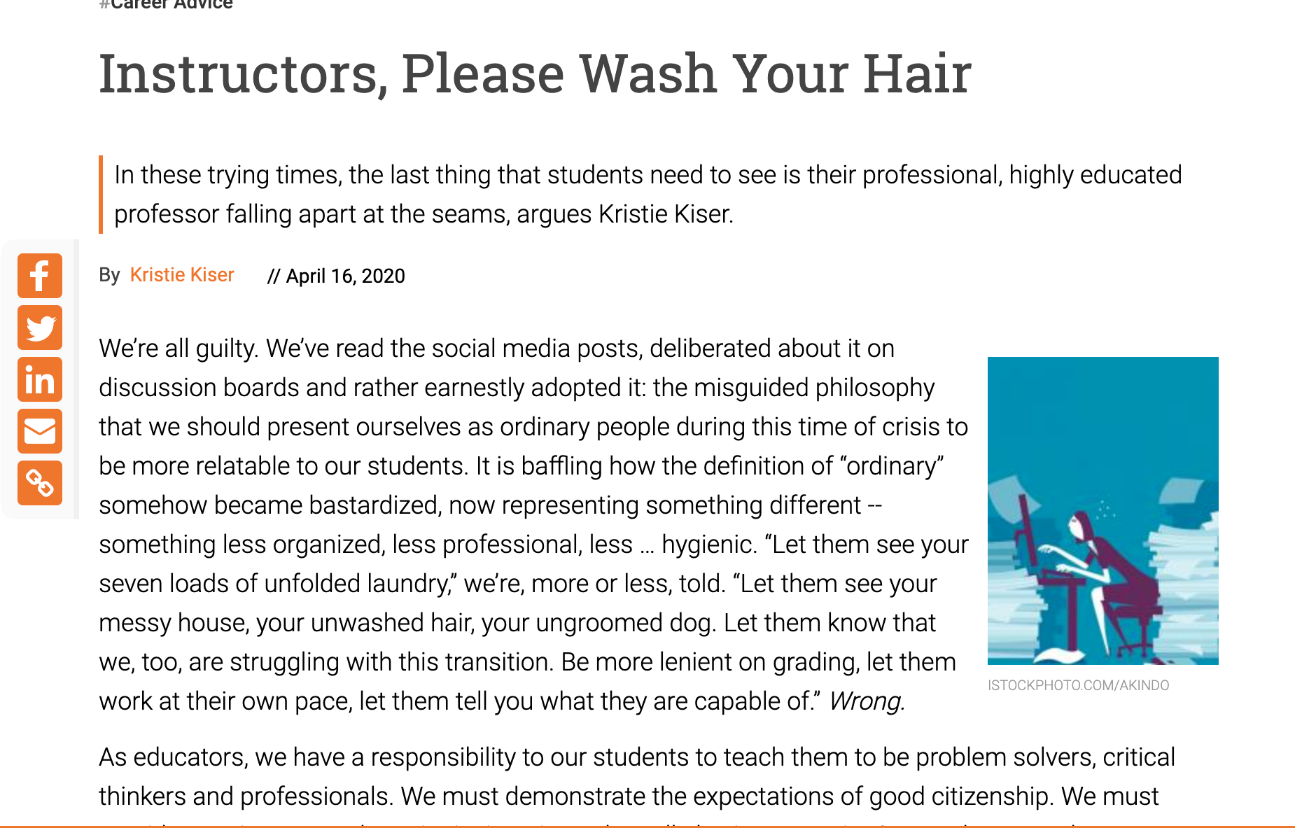 A Ph.D. student reminds professors to remain professional while teaching via Zoom. Her advice is received as tone-deaf, condescending, and sexist. Original article here. A response from Isis the Scientist via Skepchick here.