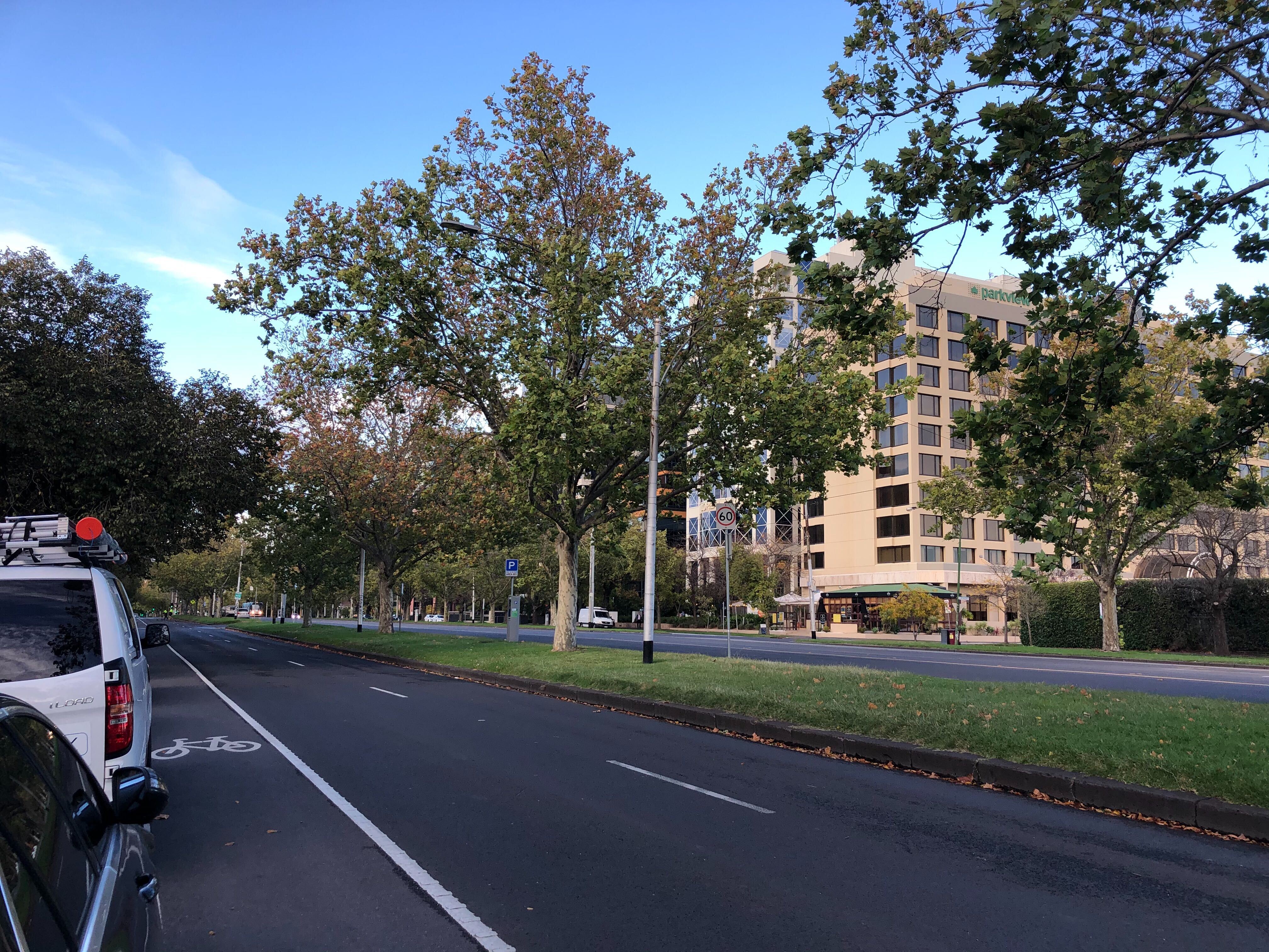 St Kilda Road at morning peak hour - so quiet! Taken by Holly Watkins, Monday 20 April