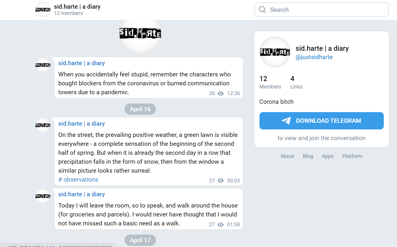 Telegram. An online diary about the personal account of the virus.