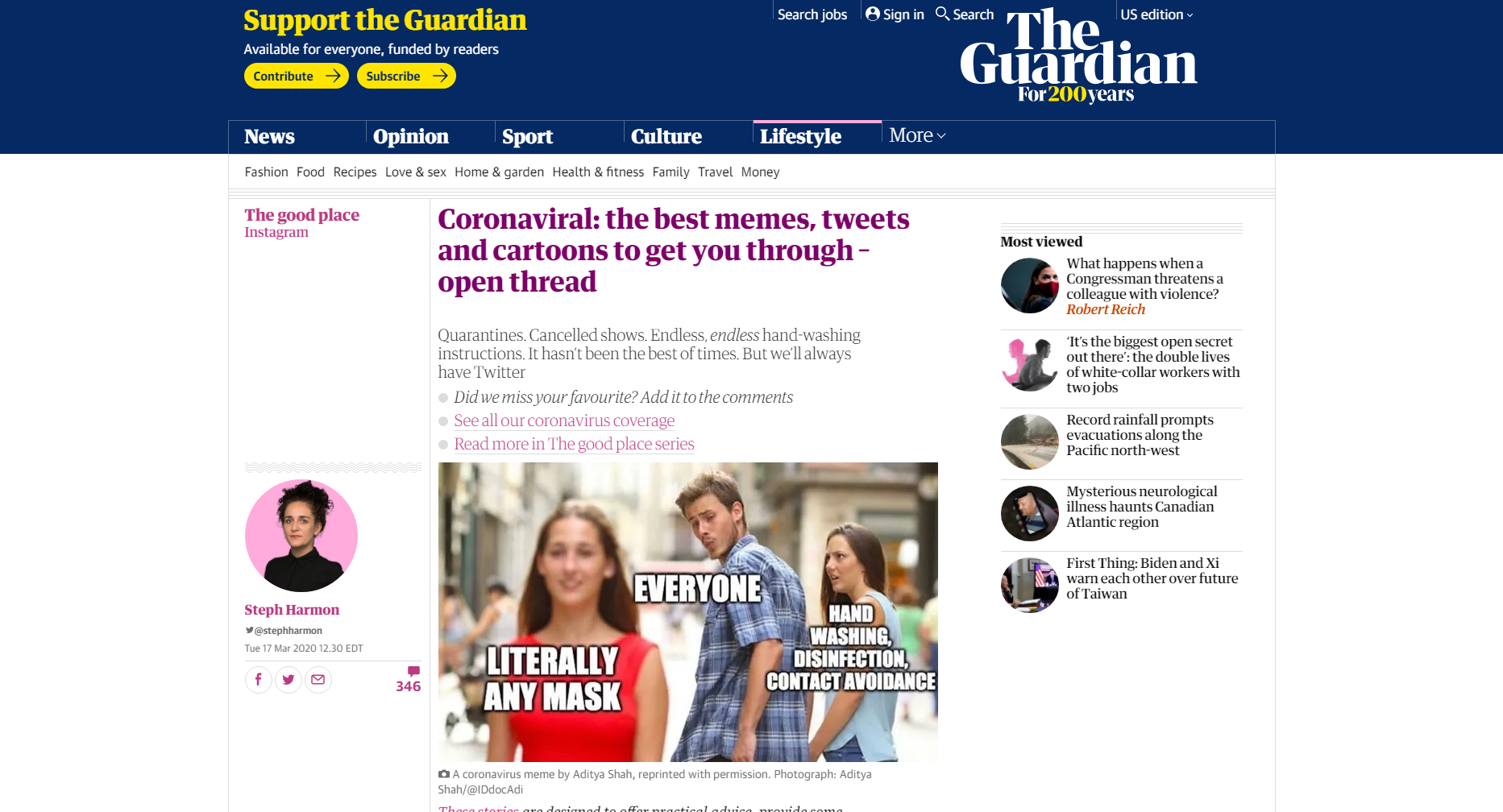 This is a large thread from The Guardian of a variety of Coronavirus memes.