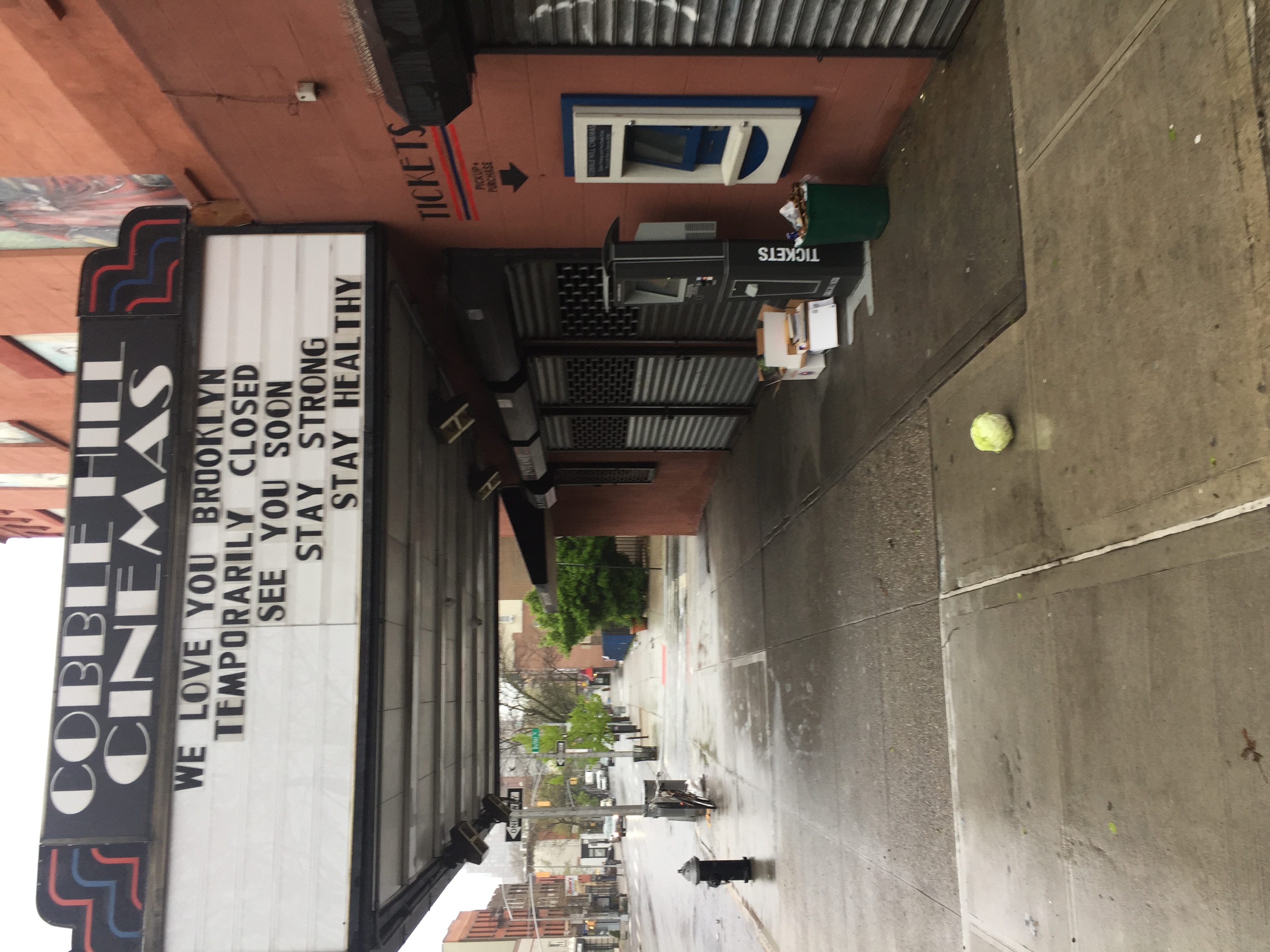 An Earth Day walk; a shuttered movie theatre marquee and a cabbage