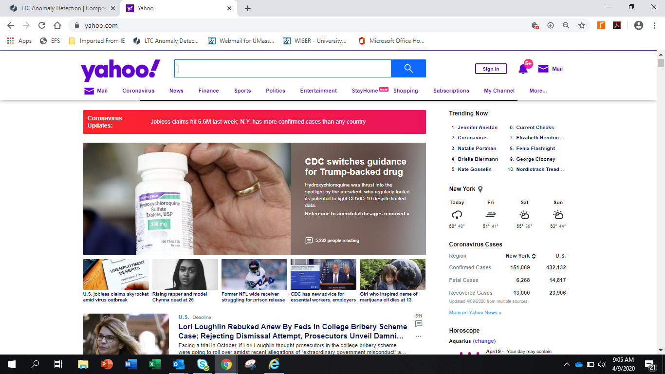 Screenshot of headlines on Yahoo News during the Covid19 outbreak.