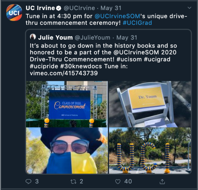 UCI announces Unique graduation for college graduates during a pandemic that killed over 100,000 ppl in the USA