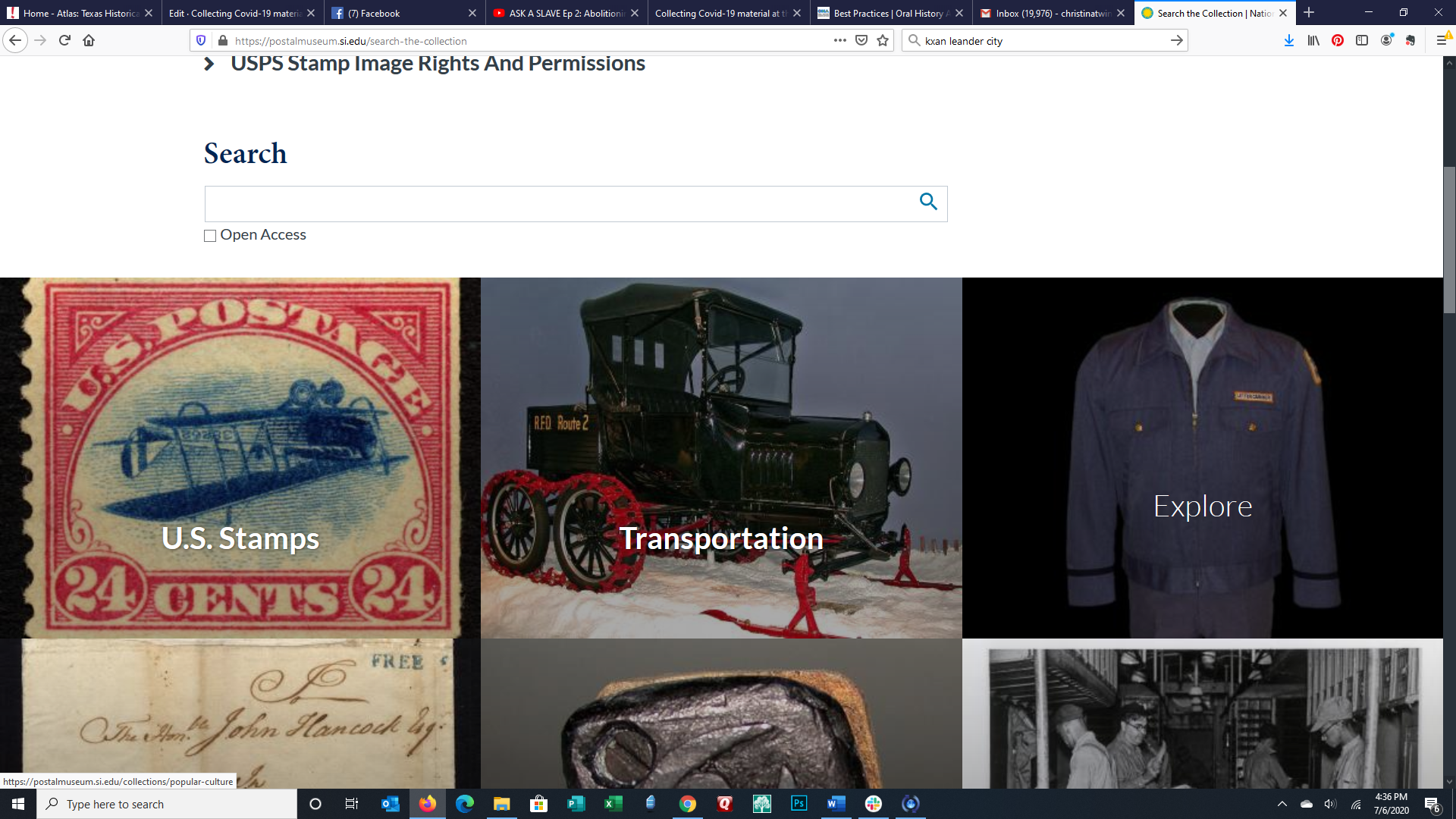 Collecting Covid-19 material at the Smithsonian National Postal Museum
