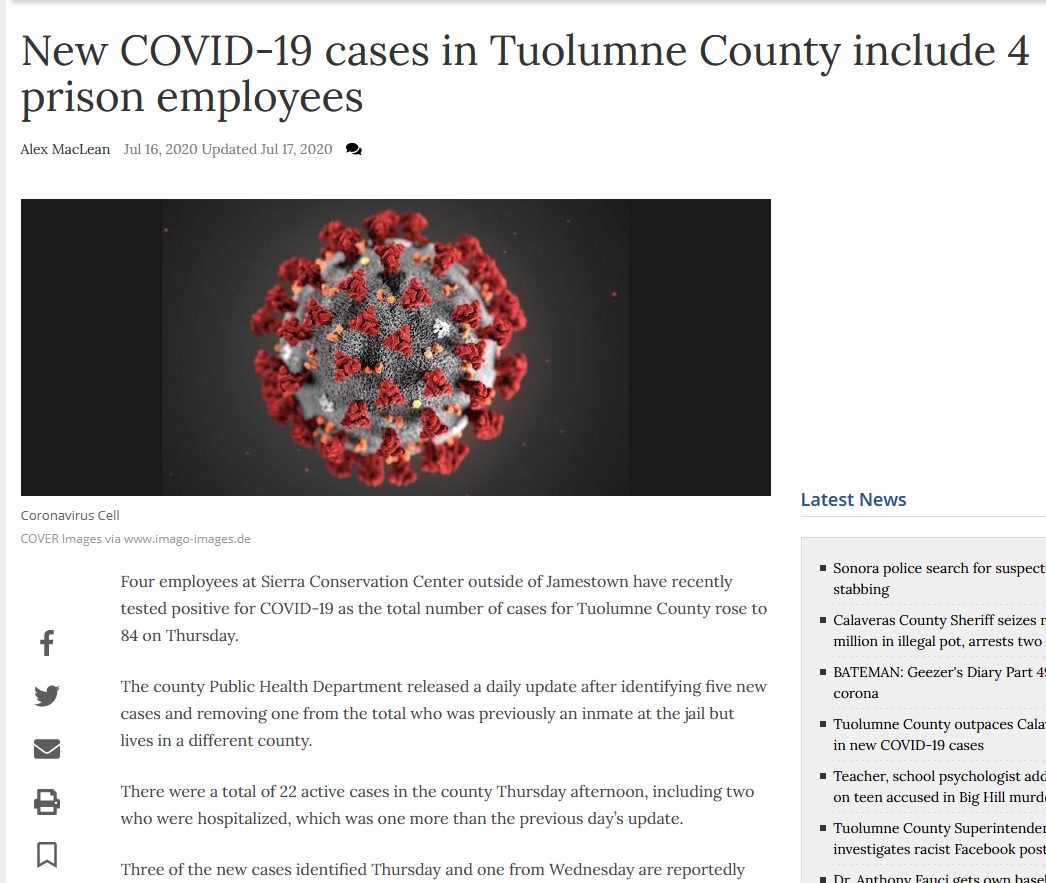 New COVID-19 cases in Tuolumne County include 4 prison employees