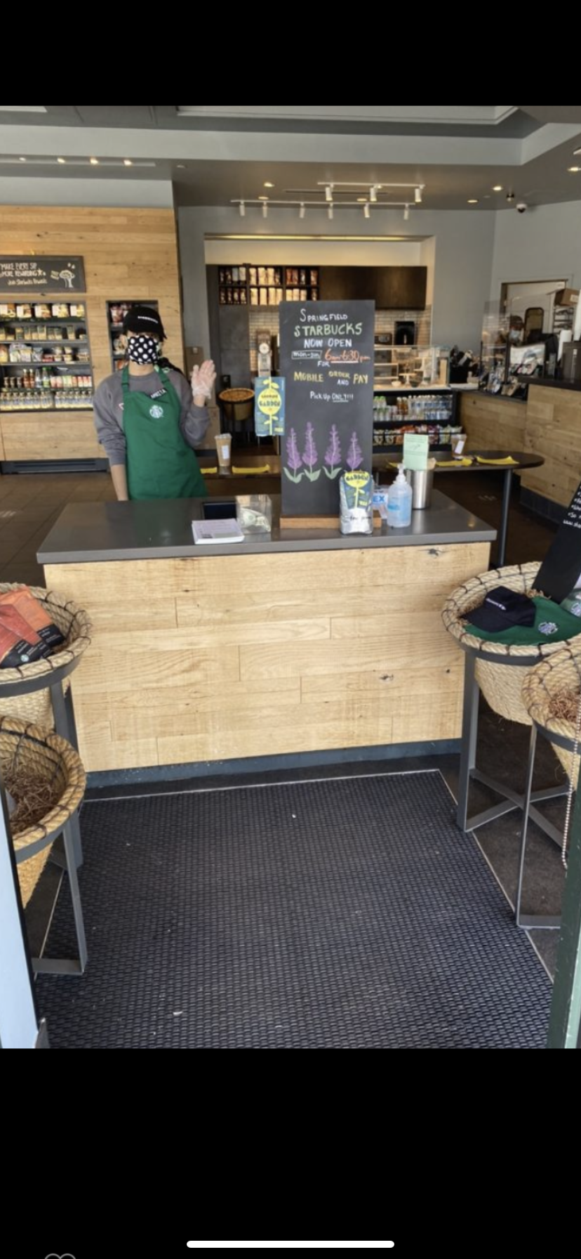 When the whole pandemic was starting, I was currently unemployed but my store manager at Starbucks kept us posted daily on whether we will be able to serve customers again. It was always an on and off conversation because our store manager had to get the approval of many people above her on whether it will be safe to work in the area of Springfield since cases for Covd-19 was increasing by the minute. As the store opened back in May, I was able to work again but with many health restrictions between I and the customers. In the picture provided, we were not able to use our computers and machines to process payments, which dramatically dropped sales because our only means of store sales were through mobile ordering. My team were still to be determined on whether we will stay open since sales were so low and also only limited amount of parters were willing to work, due to the concern of their health. Yes I worked more hours but the anxiety of whether I will get catch the disease and also the stress of whether our store will close again really affected how I saw hope for my financial strugggles. Fast foward to current day, Virginia names stores like Starbucks an essential for everyday, which allowed our store to open to customers but with six feet restrictions, mandatory masks, and as well as checking partner temperatures daily. The tasks due everyday is a heavly load of sanitation, which in the beginning was hard to handle because we also had to serve the customers at high volumes. Covid-19 has affected not only my passion to work at the store but as well as the partners since at any moment of time we can close and become unemployed again.