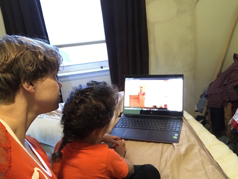 We have been attending church almost every Sunday since mid March, we society shut down in MI. We would watch Sunday Mass at our local Catholic Church St John the Evangelist in Jackson, MI. A few times we attended different Sunday Masses remotely, since many Catholic churches are live streaming their masses. The Sunday in June this picture was taken my daughter asked to attend/watch Mass at St Andrew Catholic Church in Clemson, SC, where I attended and she was baptized as a baby. She wanted us to dress in our Clemson tshirts as a way to celebrate the event.