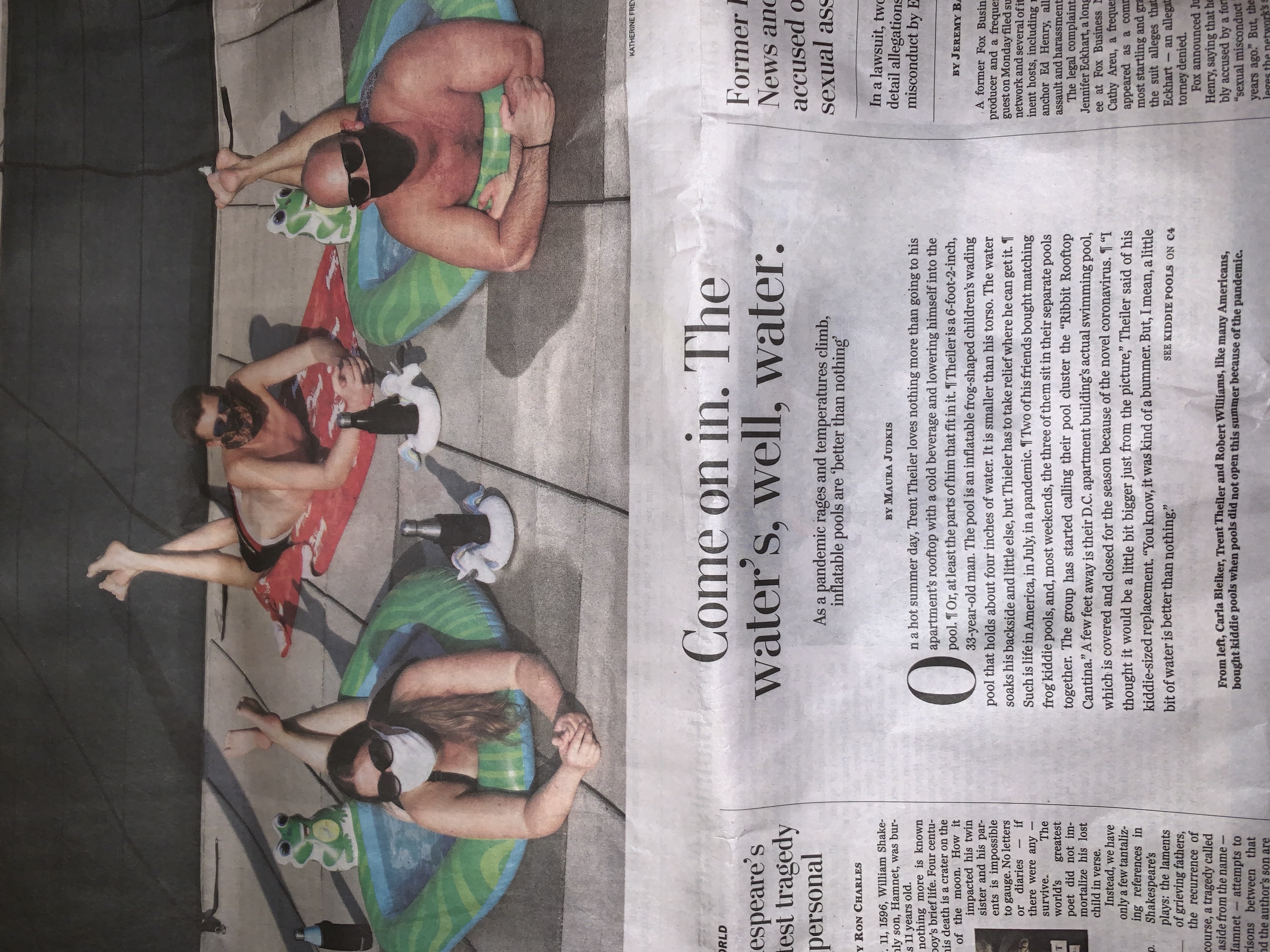 A group of friends bought kiddie pools to enjoy the summer after their community pool did not open due to coronavirus. I think this article shows how even though the pandemic has had negative affects, people can still enjoy the summer while staying safe.