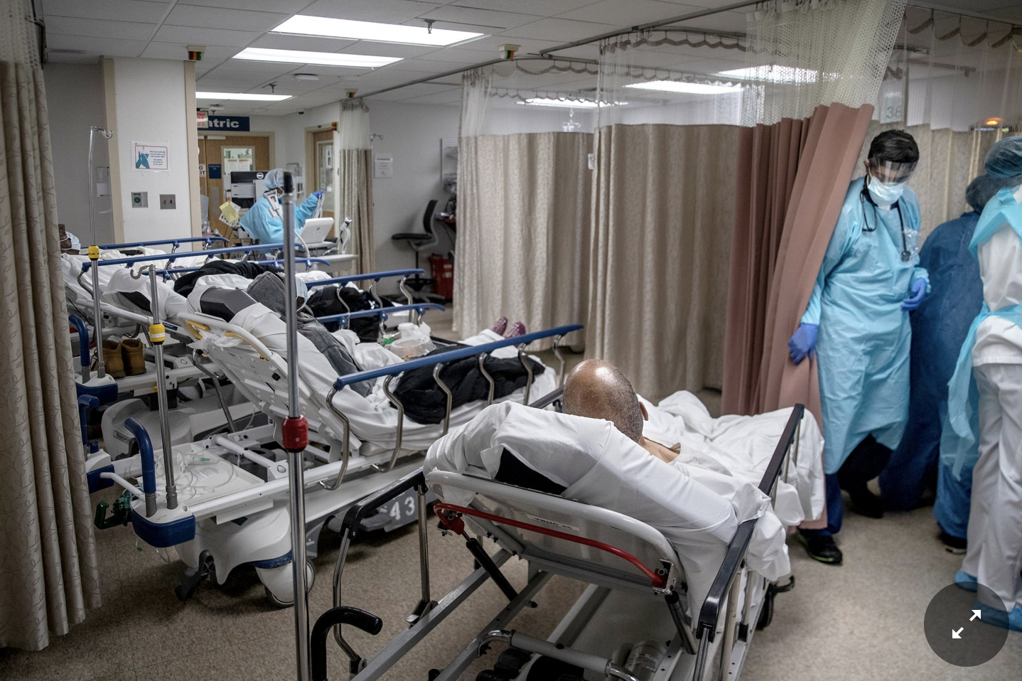 This object is a photograph demonstrating the effects that the pandemic plaguing the entire world has on hospitals and medical personnel in the United States. The object was found in an article in the New York Times.