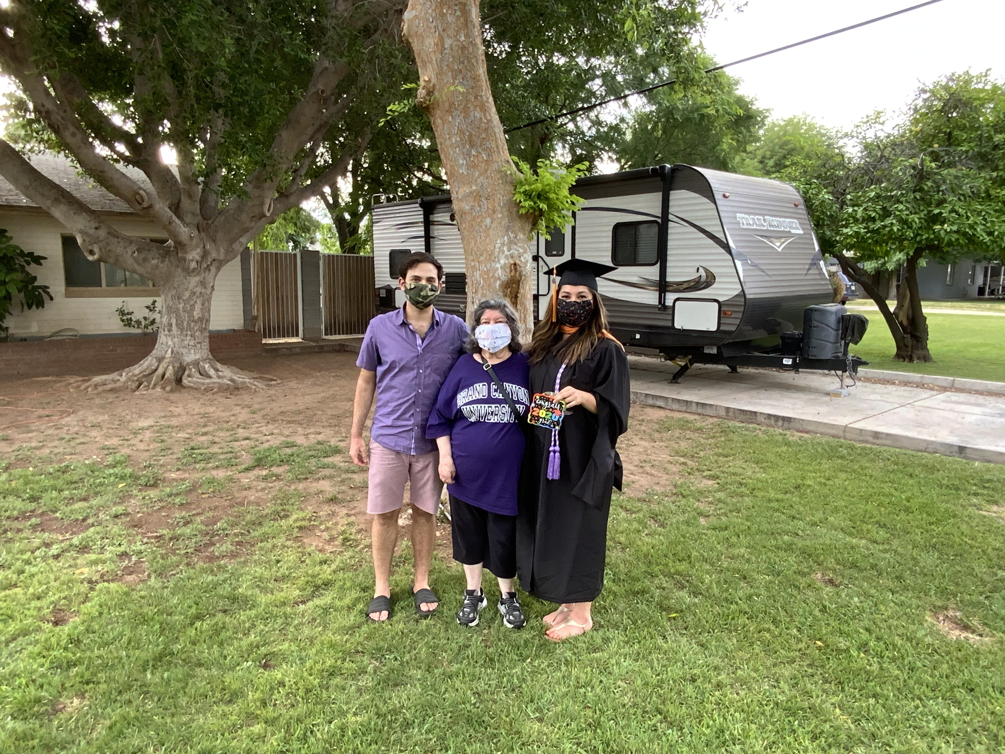 My sister has been working so hard for the past two years; late nights and difficult early morning labs. She earned the title nurse practitioner. The pandemic hit a few months before her graduation and she would work the front lines while taking the last push towards graduation. As expected her graduation was cancelled and she was mailed her practitioner license. My family and I thought that her hard work deserved a proper celebration so we planned a way for our family to get together but follow all the proper precautions. We saw those drive by celebrations and planned one of our own. My grandmother demanded to be apart of the crowd at home to be closer to her granddaughter and no could tell her any different. This is one of the pictures from the celebration.