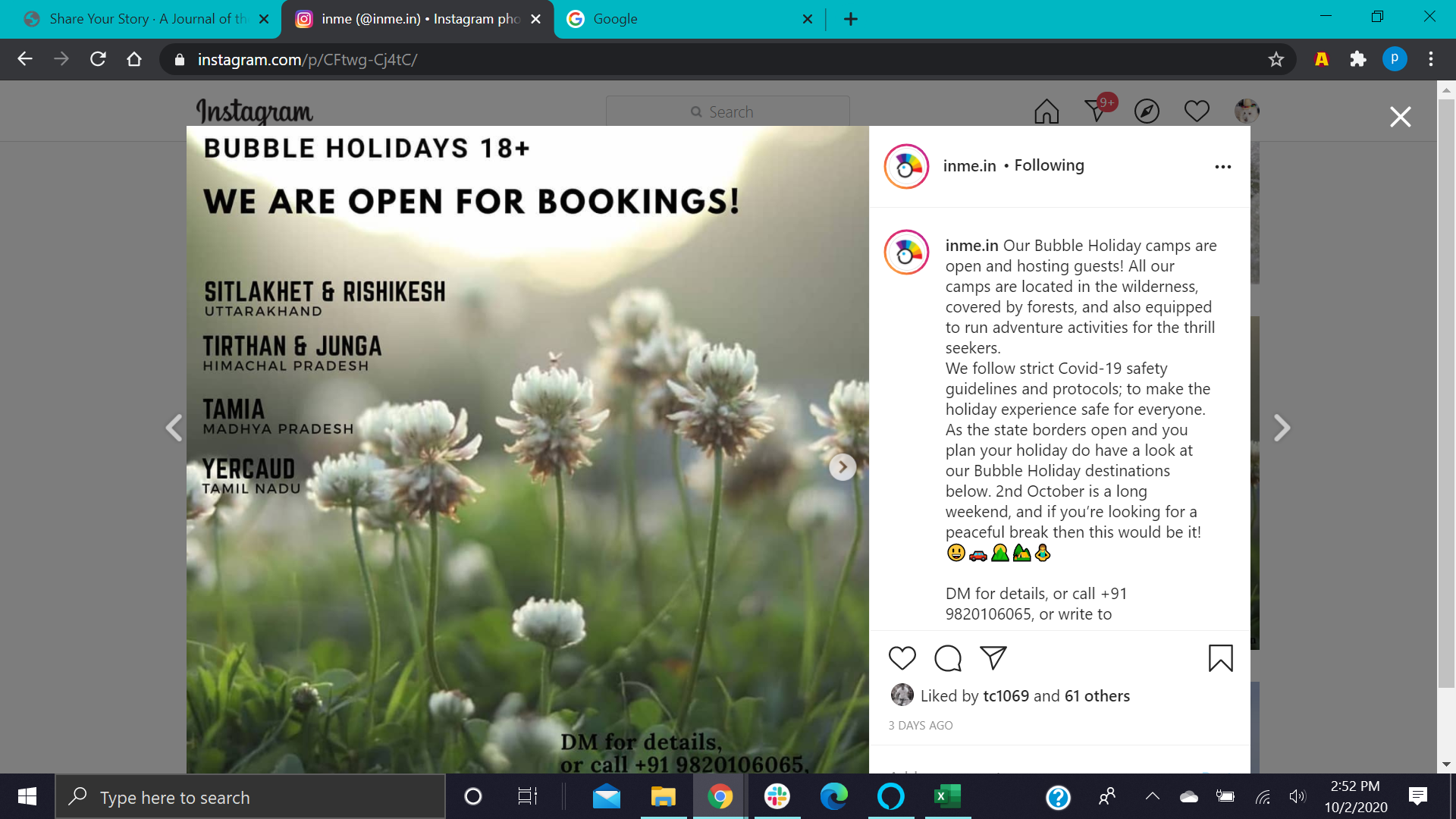 Are you a thrill seeker? Are you bored of sitting at home all day? Don’t worry we have a safe way to fulfil all your desires. Bubble holiday- The safest way to travel during a pandemic. The Inme-Yoreka group makes it possible for people like you to travel to different camps located in the wilderness, covered by forests and equipped with adventure activities. 60 miles away from the holy city of Rishikesh exists India's most exciting holiday destination. Atali ganga resorts offer comfortable accommodation, beautiful views of the valley, and go river rafting, rock climbing, hiking, inflatable kayaking and camping. Following all COVID-19 safety guidelines strictly we make sure that your experience is safe. Check the website for more information.