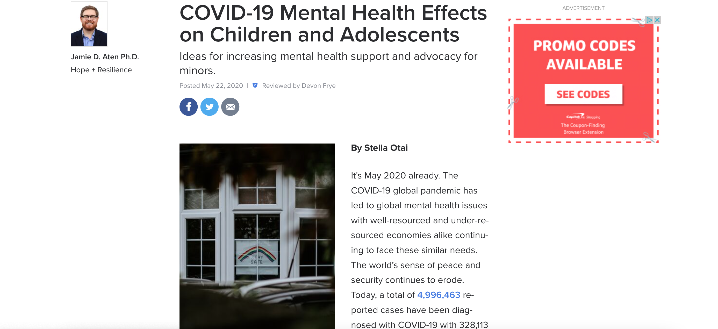This article talks about the effects on children and adolescents that covid had had on them. Due to covid the mental health rates have gone up because of a change in lifestyle.