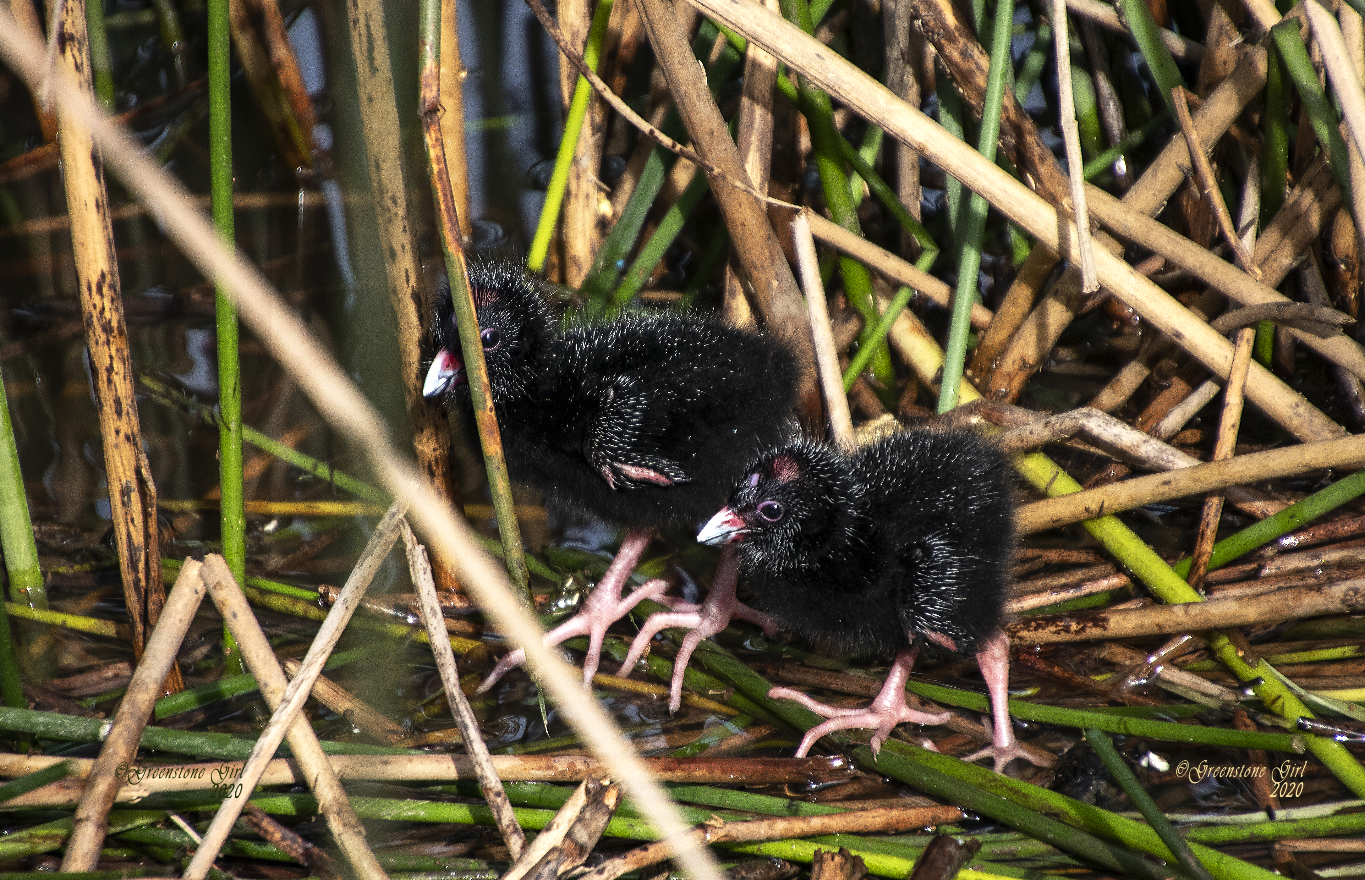 One of the good things that has occurred with the second stay-at-home lockdown in Melbourne, Victoria is that we are all out walking more regularly. This enforced 5km limit from home has meant that we are looking more closely at our environment. These Australasian Swamp Hen chicks were recently hatched and stumbling with their big feet through their reed nest. A couple of days later a big rainfall event swamped the nest but the chicks have survived as I have seen them on the ponds in the wetlands. A beautiful and hopeful reminder that the natural world cycle of birth is going on around us inspite of the Pandemic.