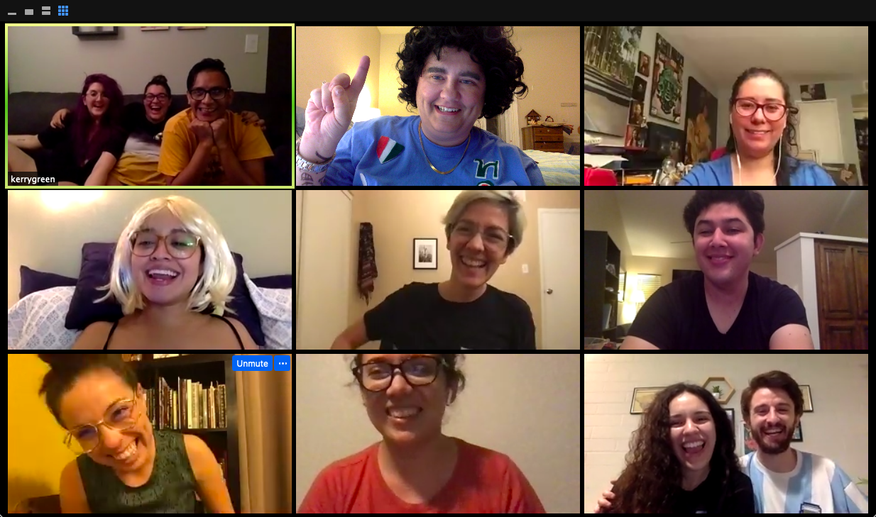 This photo is of the participants of a trivia night for Spanish graduate students at ASU. We have been getting together on zoom and having trivia nights every other Saturday to try and connect, since most of us don't see one another due to covid. Most people either take their classes and/or teach them online, so the comaraderie of the office is gone. We aren't able to meet the new students in person and make them feel at home because of the distancing required.