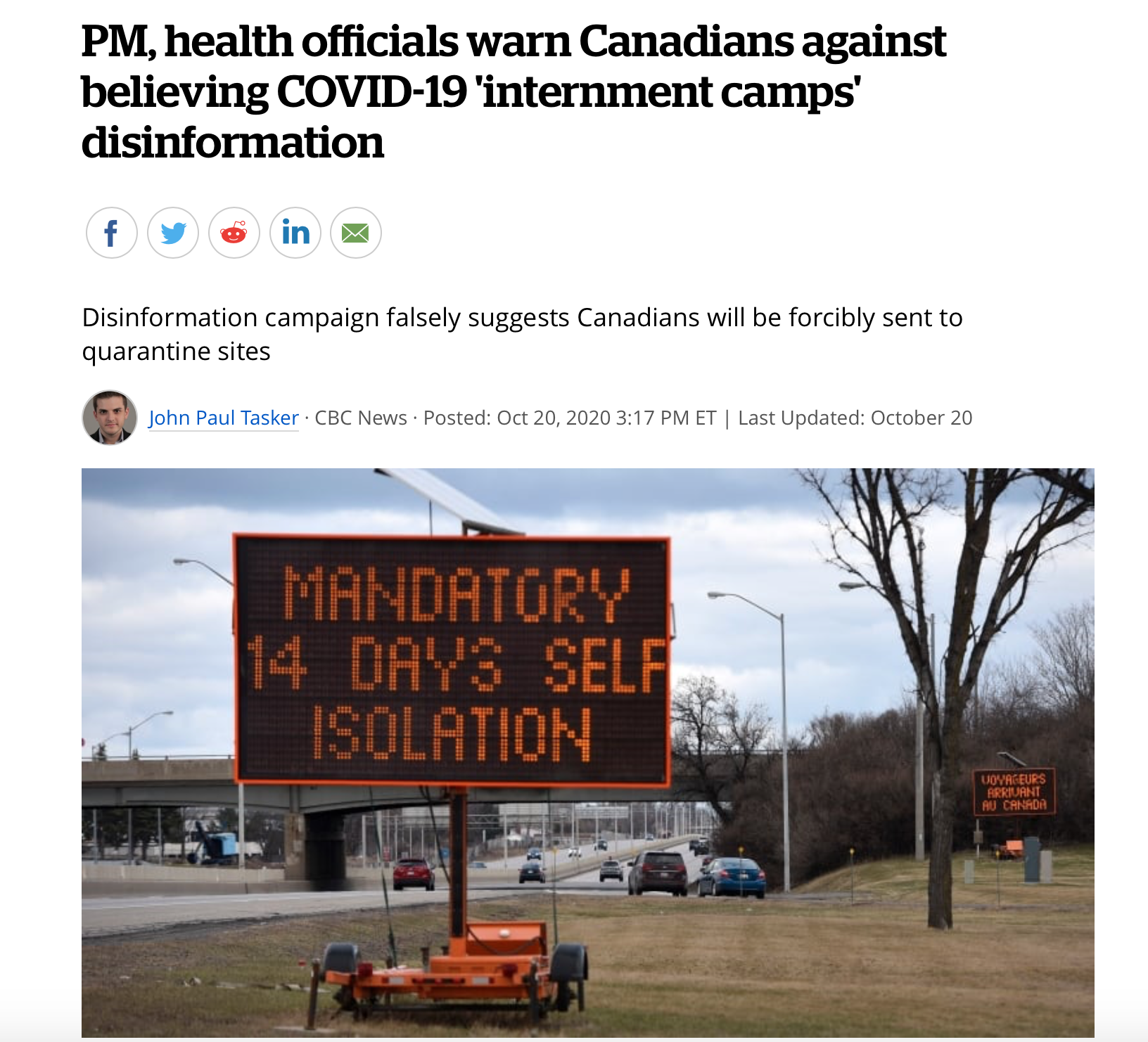 Health officials warn Canadians against believing COVID-19 'internment camps' disinformation