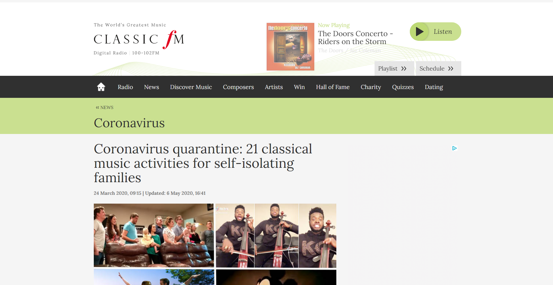 With families and individuals having to go into self-quarantine, a well-known classical music station suggests musical ways to keep busy and entertained.