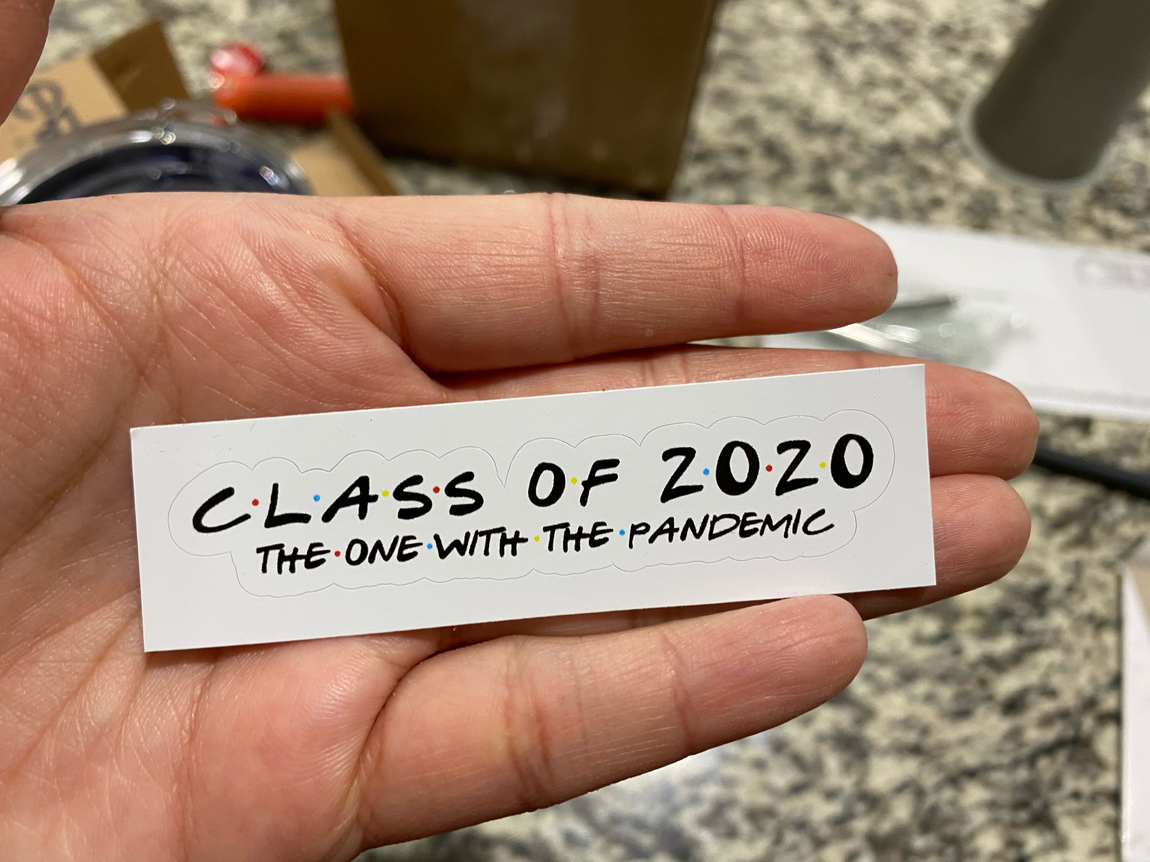 Recently my sister graduated from Practitioner school but unfortunately wasn't able to have a traditional graduation. I still wanted to celebrate the best way I could because this was a huge accomplishment, so I searched the internet for funny little things to get her and I found this perfect sticker. She loves Friends and it worked perfectly for the situation we are in. It also led me down a rabbit hole of other satirical products related to the pandemic that I thought was super funny. I'm happy that people are able to make the best of this weird time.
