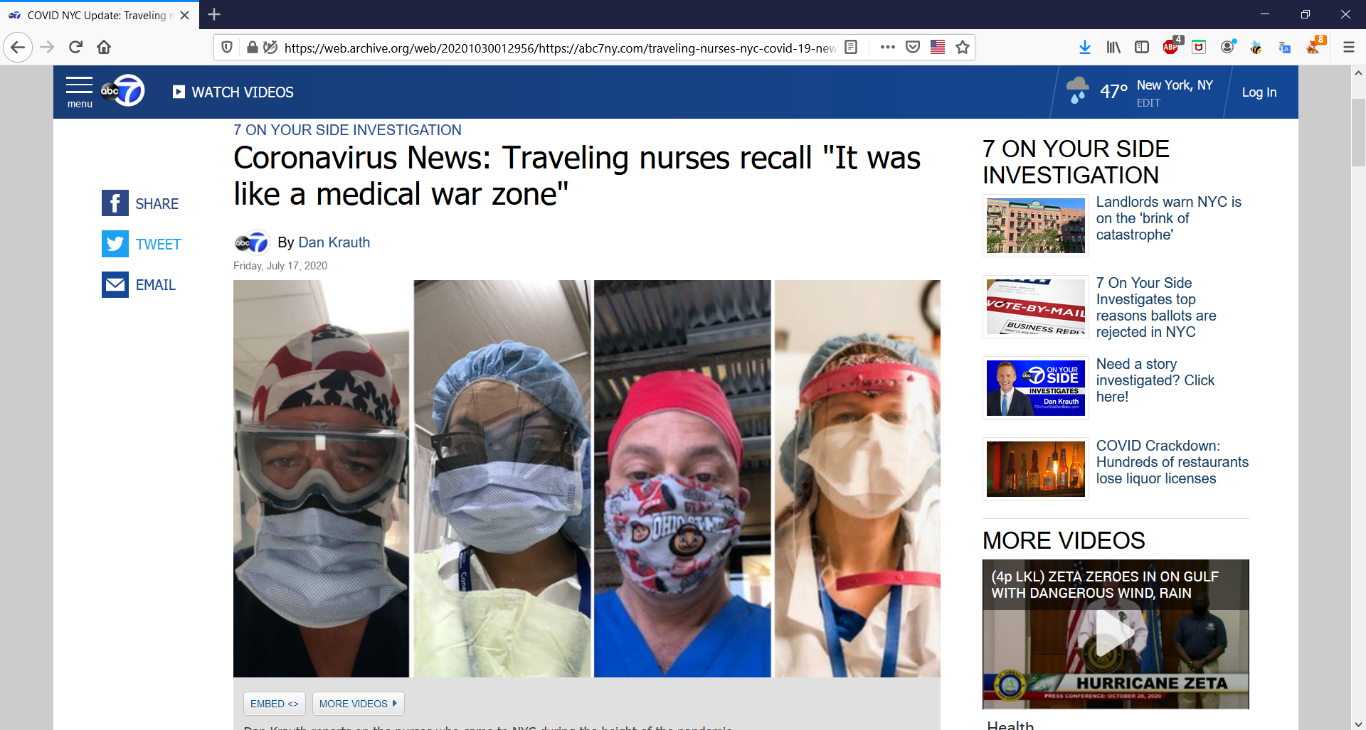 This article shows what things are like on the front lines during a pandemic. In the article a nurse states that they literally had to choose who was going to live, and who was going to die. They had to wear the same PPE for days at a time; even when there were feces and blood on them. There is a lot of information about what life has been like for nurses on the frontline and I think that needs to be heard.