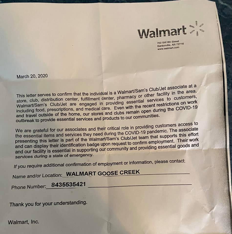 This photo was sent to me from a former coworker that was “served” a “permission slip” as she called it, for being an essential worker during the pandemic while working for Walmart. It’s important because while we would normally think of an essential worker as someone who is in healthcare or emergency services, grocery employees were considered essential for the items they sold that were in serious demand during the panic of the pandemic. All hands on deck is the most appropriate phrase here.