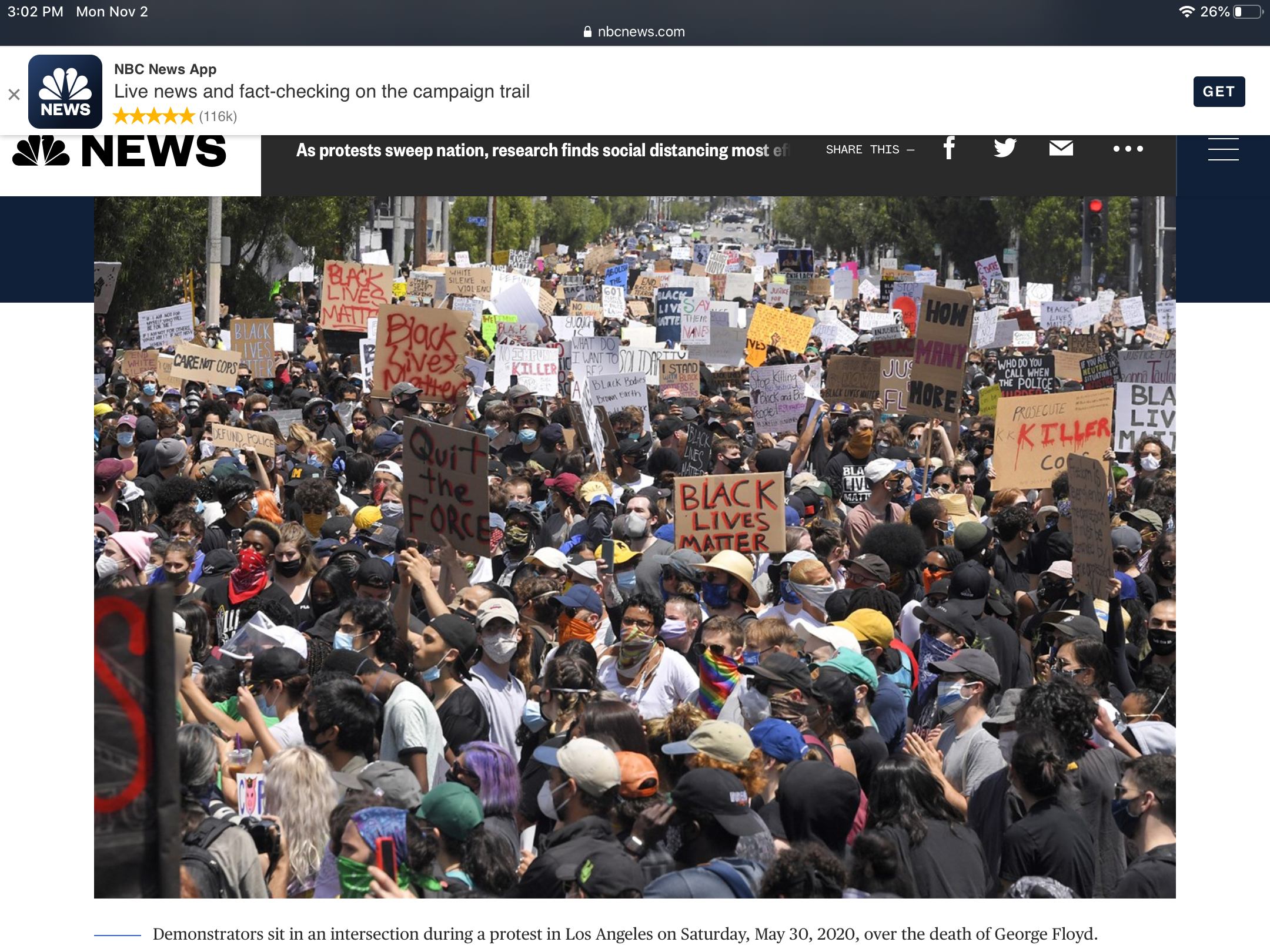 2 Ive heard people talk and stress the importance of social distancing, but when it comes down to it we tend to forget or disregard it. I know it is and still is important to go out and protest or get out of the house for our sanity but I feel like people continuing to disregard the “ 6 feet apart rule “ as we can clearly see in this photo. Social distancing no matter where , whether thats out there protesting, voting , shopping or getting dinner , you are should be followed to keep its effectiveness. I want the future to know that we didn’t do or try our best to help reduce or end corona whether it was because of our government not taking this seriously or because individuals continued to go out and further spread corona.