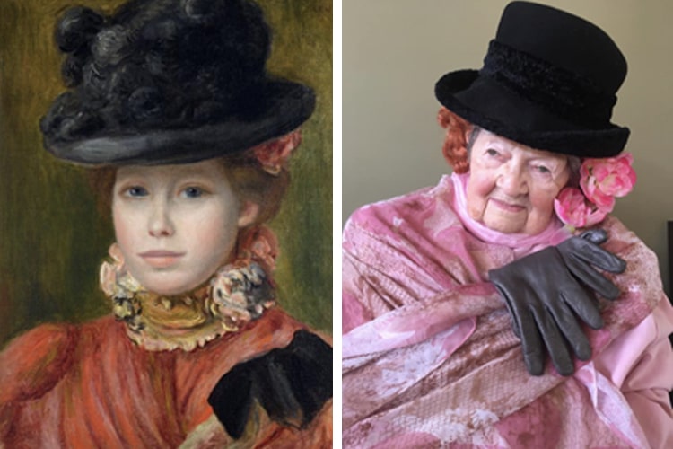 These are just two of the images that accompany mymodernmet.com’s article “Seniors Recreate Works of Art While in Covid-19 Quarantine.” The seniors took part in the Getty Museum Challenge, the object being to recreate paintings from items around the house.