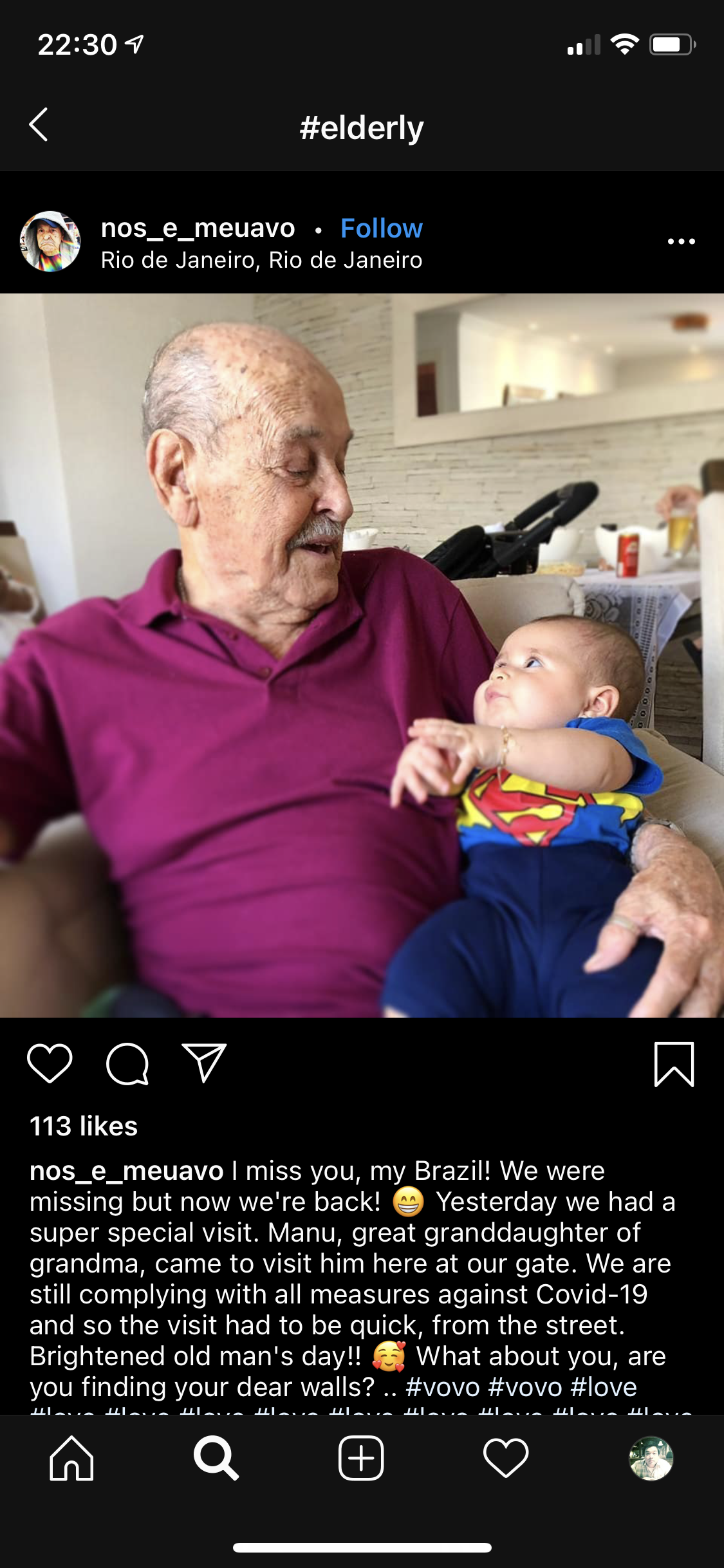 A social media post of a grandfather visiting his grandson during a pandemic. It’s a nice picture shared on instagram that reflects how seniors must cope when visiting family.