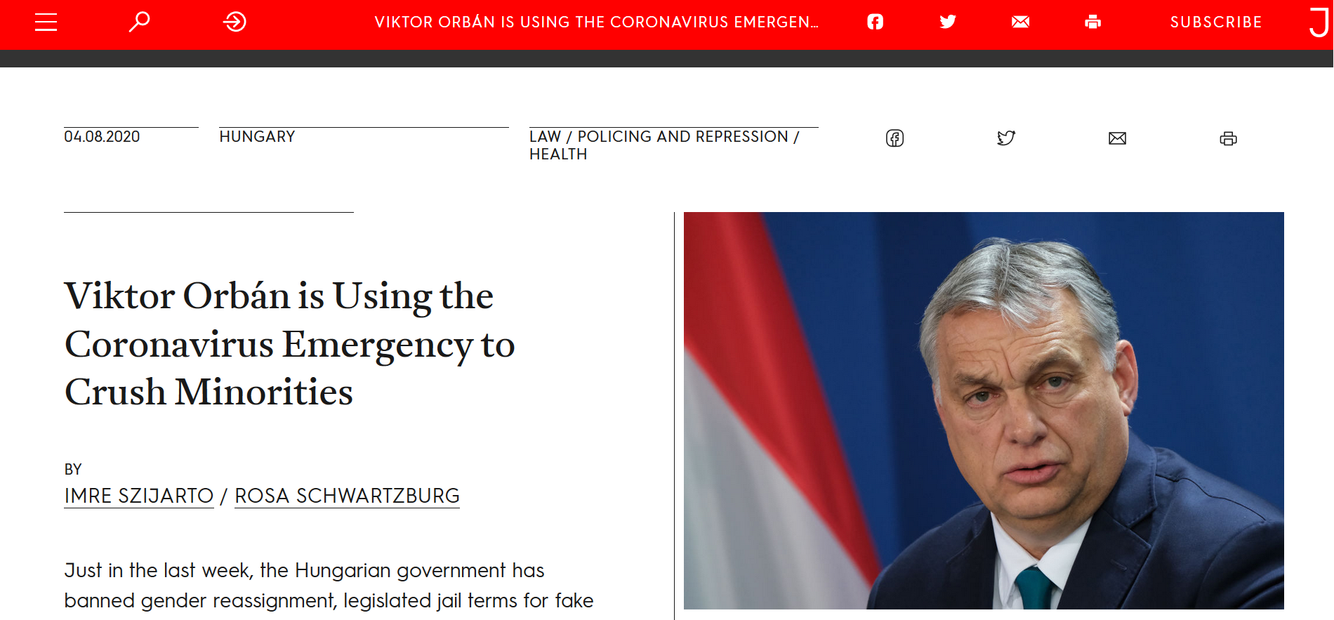 "Viktor Orbán is Using the Coronavirus Emergency to Crush Minorities" - Jacobin