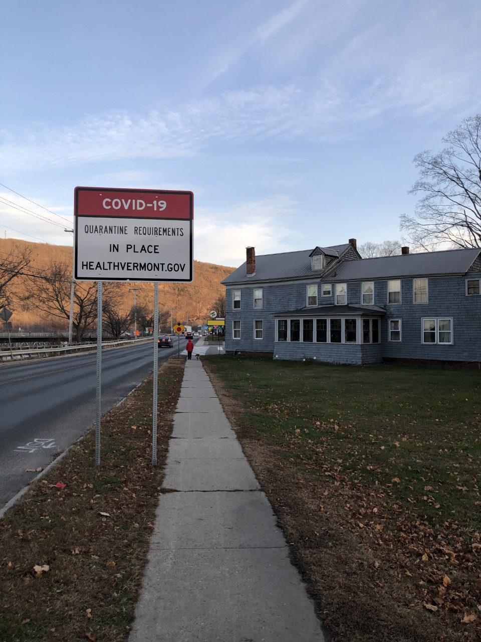Since this semester is all online, I have been living at home in NH instead of at school in Boston. Since this is the case, I am able to continue working where I was at over the summer in VT. At the beginning of the pandemic when you would cross into VT you would see one of those big orange construction signs stating that if you come to visit VT you should quarantine for fourteen days at home. Alongside the sign would be someone in a DOT truck watching the traffic. Sometime between yesterday, November 17th, 2020, and today, November 18th, 2020, the state of Vermont added these permanent signs at all the crossings in and out of the state. It really brings together how much of a lasting impact this virus has had on the world and that this is something that is not going anywhere anytime soon.