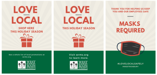 This is an image of storefront posters designed by West Roxbury Main Streets. In recent years, there has been a push for shopping at local businesses to stimulate local economy. At first glance that’s exactly what these look like until you get to the third one. As per local and state ordinances, masks are required to be worn in public. With the holidays around the corner retail services will be in high demand and operating businesses safely is on most people’s radar. Last year if I said, “oops I forgot my mask,” that would not mean anything, and people would probably think I was crazy. Now that’s just the way life is and to shop you are required to wear a mask. Now, not everyone does this and not every business will enforce this, but some will. The #lovelocalsafely will hopefully be used so all those posts can be looked at in the future, but it also shows how much local businesses care about the customer.