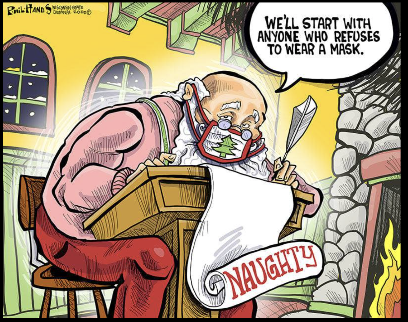 A friend shared this on her Facebook page. I wanted to share it, but this type of imagery is so polarizing that it's sometimes exhausting to get into a social media battle. I do think about unfriending people who don't think COVID is real and don't want to wear masts. The truth is, one only need to look at Australia to see that strong public health restrictions actually do stop/slow community spread. Anyway, if there were a Santa he'd say put your mask on and be jolly about it.