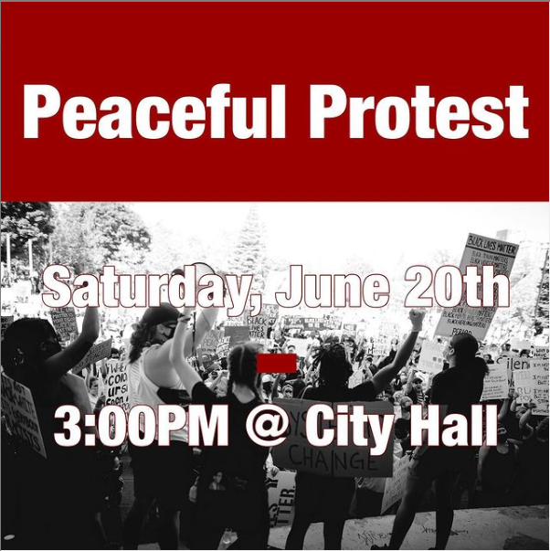 This poster advertises a peaceful protest, and some of the space is used to explain COVID protocols while protesting.