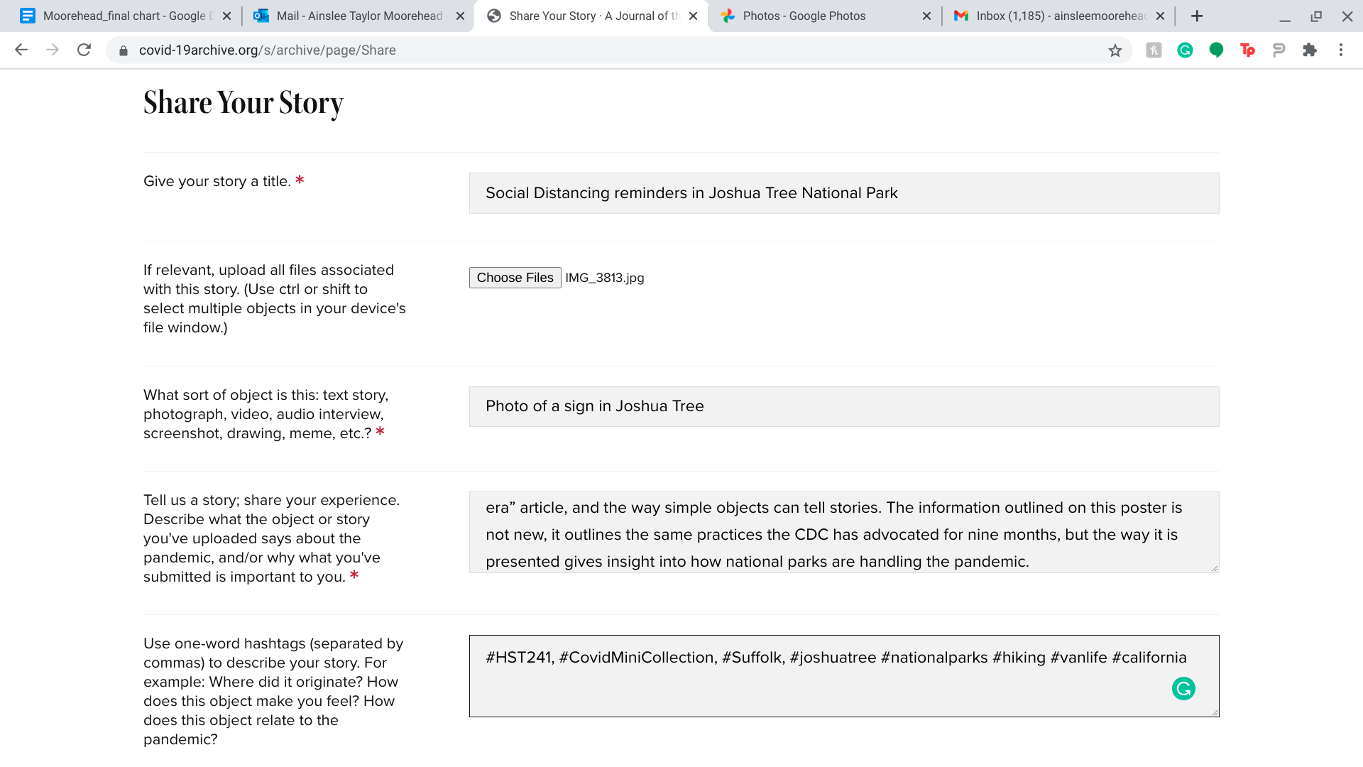 This item was submitted on December 16, 2020 by Ainslee Moorehead using the form “Share Your Story” on the site “A Journal of the Plague Year”: https://mail.covid-19archive.org/s/archive