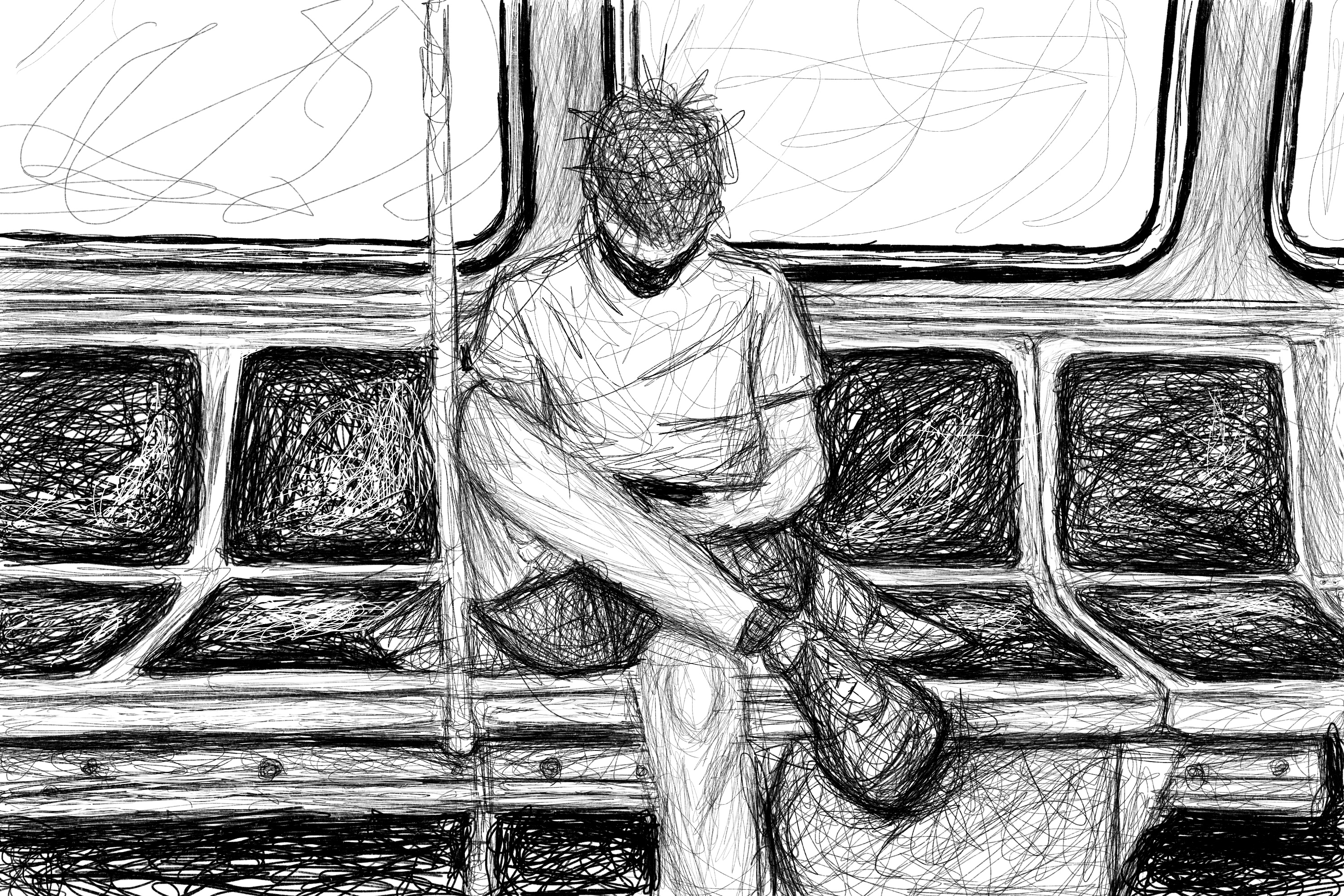 In the city of Chicago on Monday morning I was used to the train being super packed. However on this Monday there was only one masked man on the whole train. So I sat and did a social distanced doodle to capture the moment.