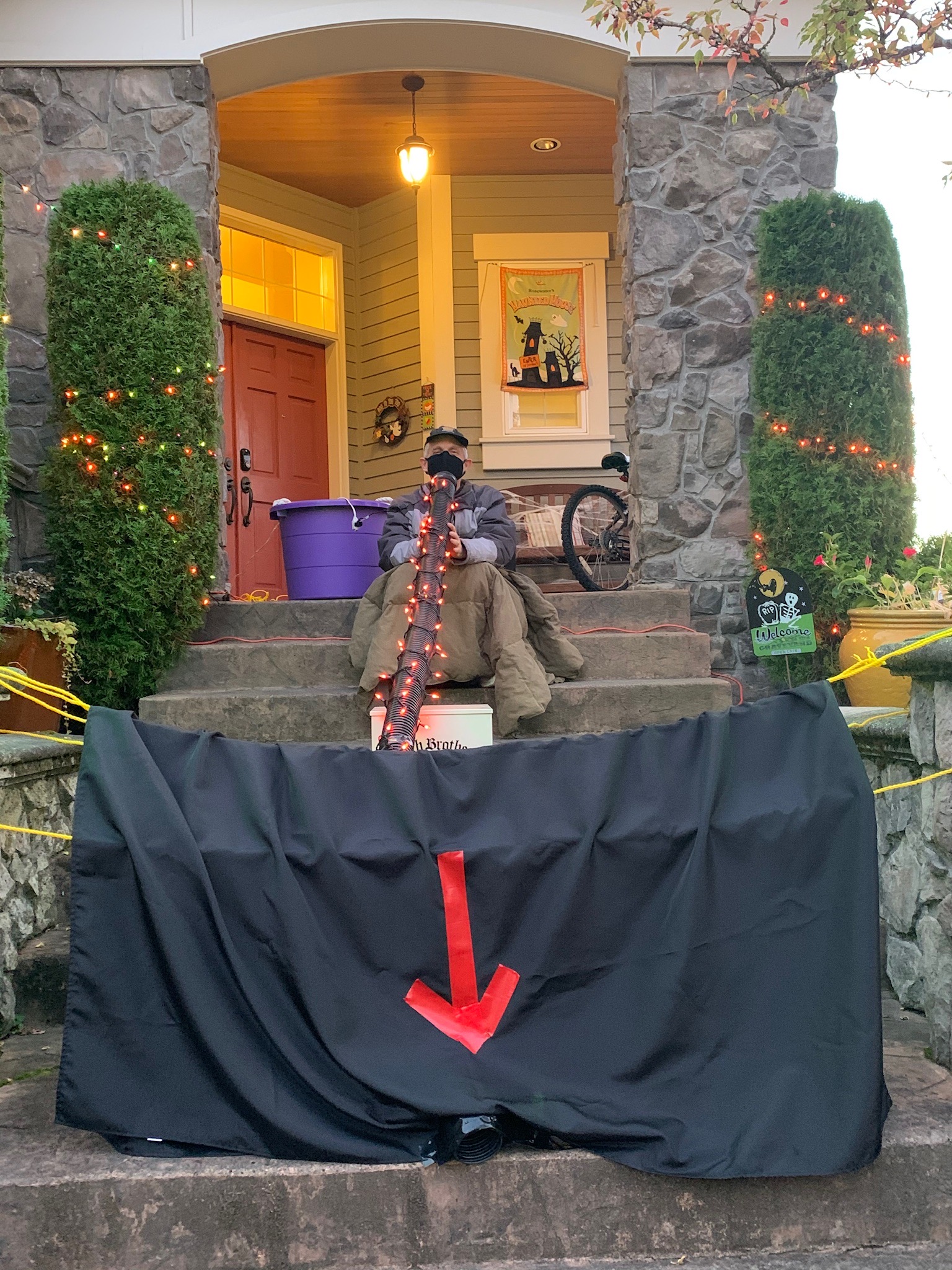 My parents run trick-or-treating at our door. In usual years, they have a large tub of candy and the rule is you can have as much candy as you can grab with one hand. It has been pretty successful in the past, but was impossible this year. What they decided to do was go to Home Depot and construct a chute where they would send bags of candy to people from 6 feet away. Less people came, but the ones who did were impressed.
