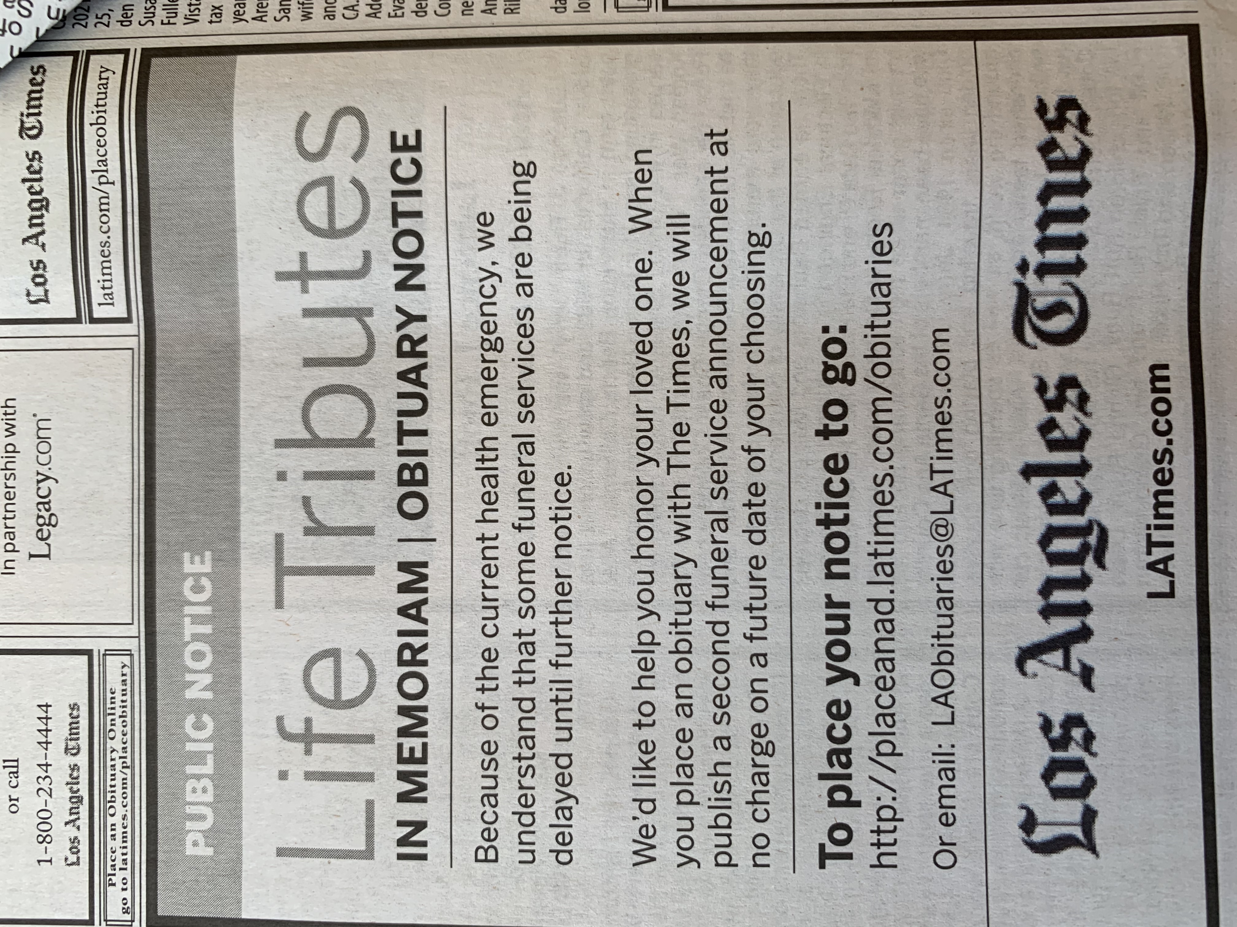 Newspaper Ad Obituary