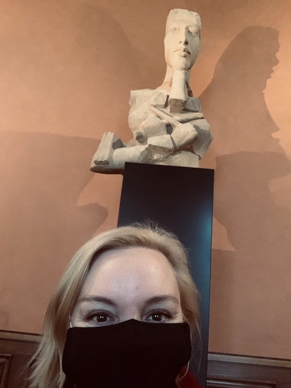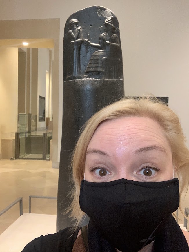 By the time we could travel, a first visit to the Louvre seemed like the ideal place to experience some of this new knowledge first-hand. In these photos, I'm in front of the Law Code of Hammurabi and a bust of Akhenaten, one of Egypt's more fascinating pharoahs. We had to show proof of vaccination to travel as well as enter the museum, and masks were required at all times.
