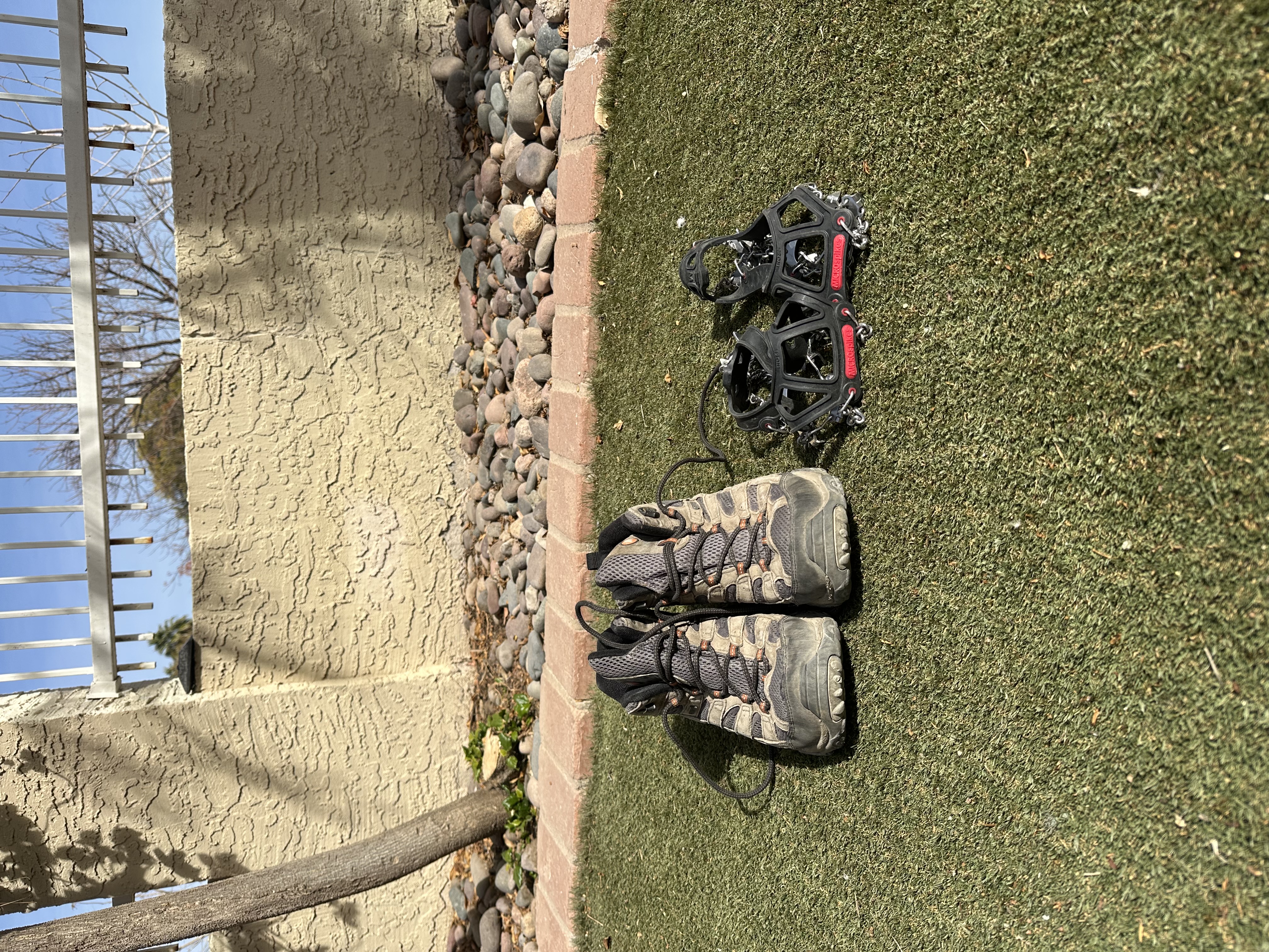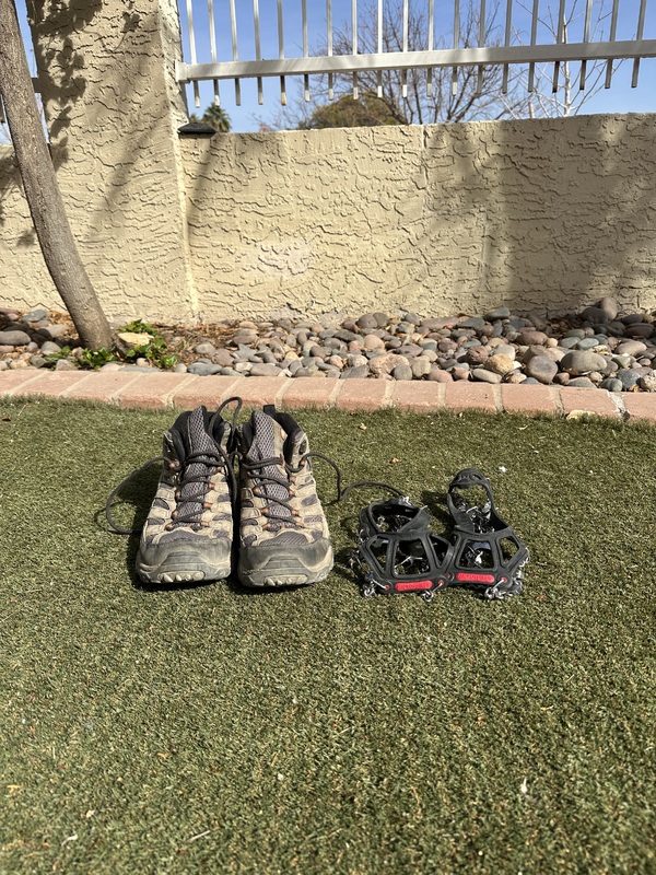 When I think of COVID, I think of the joy of hiking with my friends, a hobby which we continue to this day, but I also think of the pain of not knowing what the future would hold for us. I think of the feeling that time was standing still and the mix of peace and fear that brought me. As the vaccines began to be rolled out and the world started to open back up, the four of us decided to move together to Arizona to escape the cold and the memories of lockdown. I left most of my possessions behind, but I kept these hiking boots and microspikes, just in case.