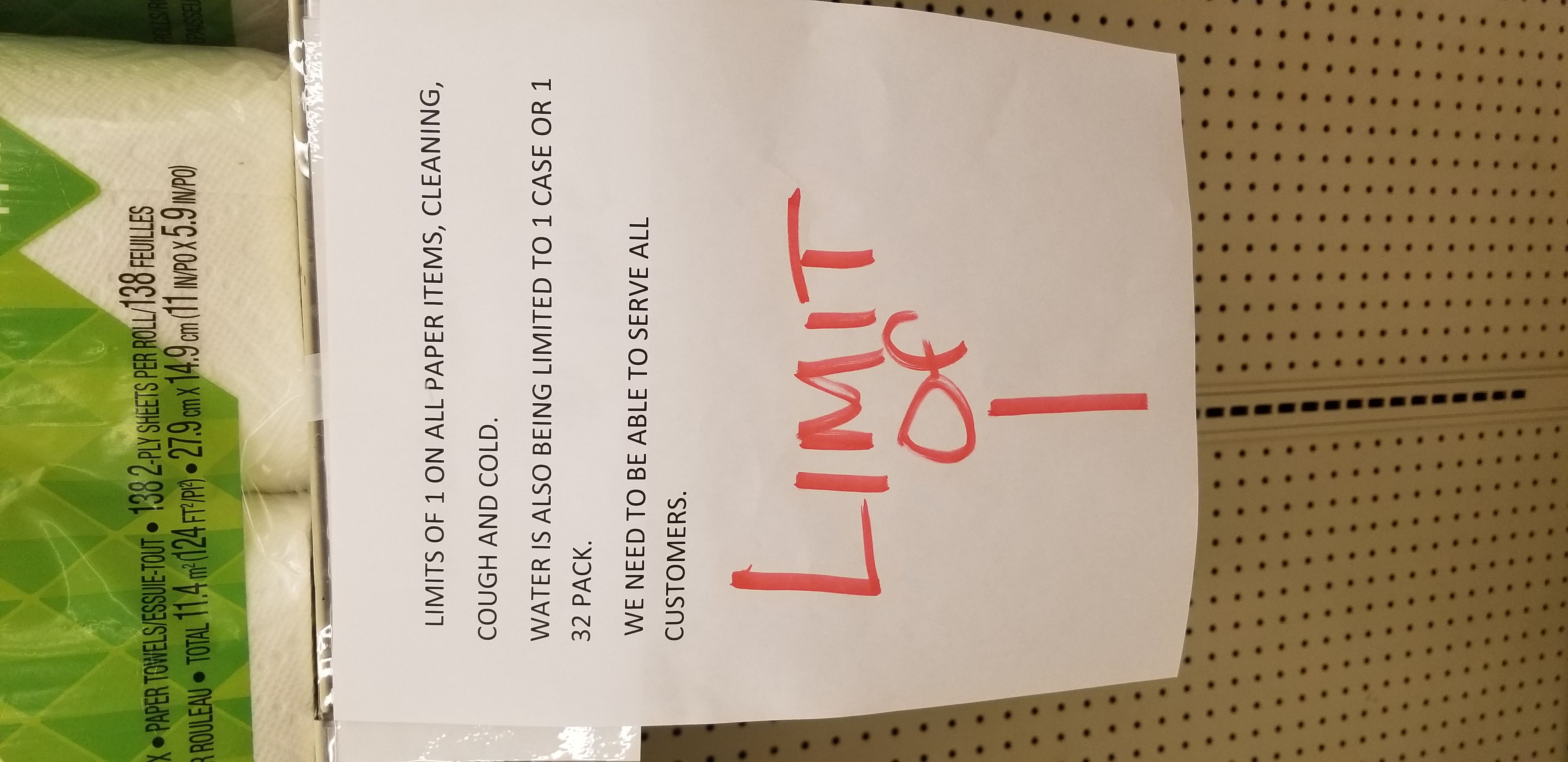 In order to serve all customers during the pandemic, this business posted signs limiting certain items to one per person.