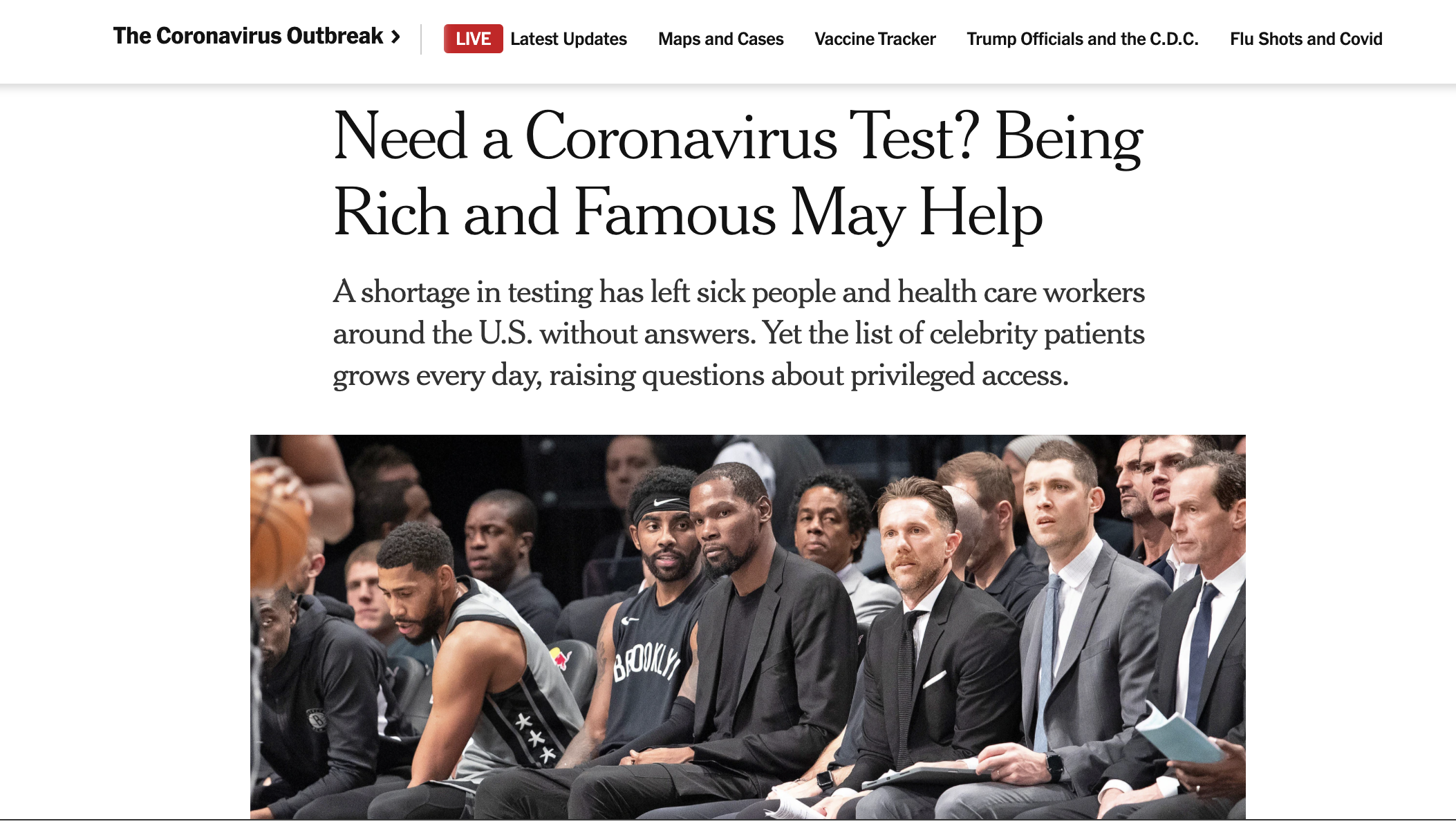 This source examines the connection between wealth and access in COVID-19 infected United States of America. Particularly the connection between NBA players and getting tested.