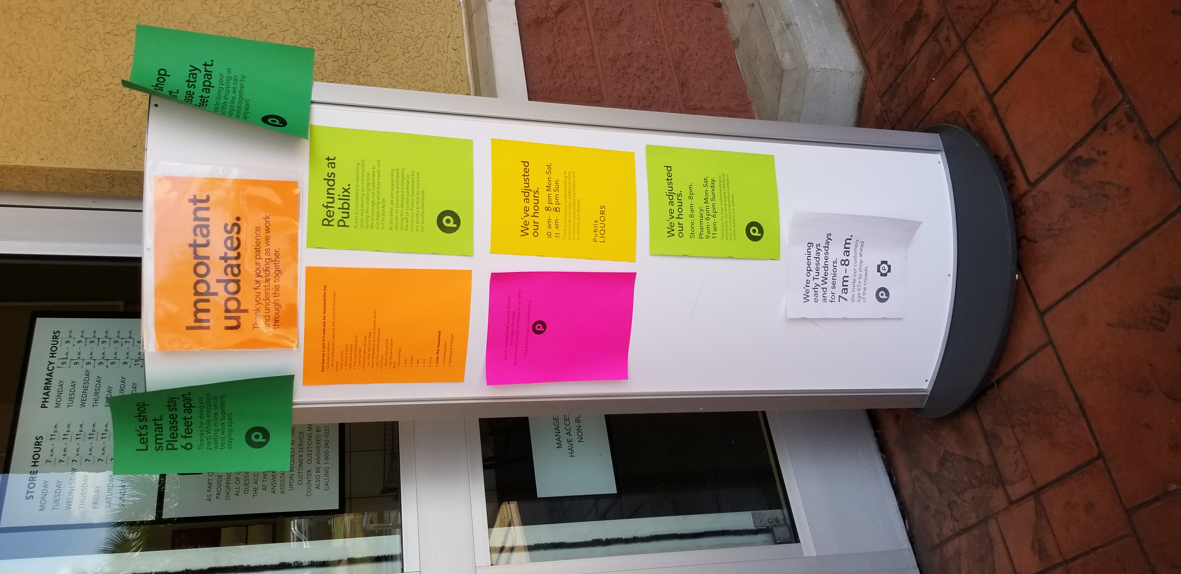 When I went to the grocery store on 3/28/2020 at Publix 3521 Thomasville Rd Tallahassee, FL 32309-7134, they had placed a large number of informational signs outside the store