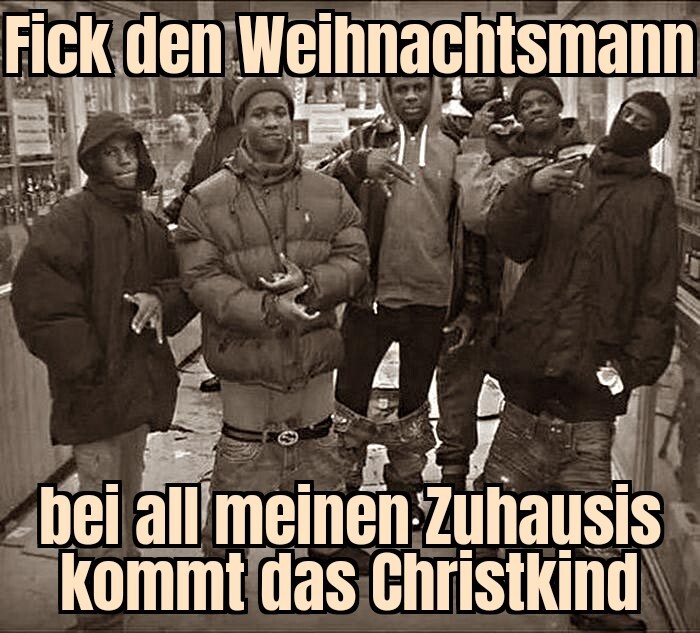 Translation, Nonliteral: [ Fuck Santa, all my homies are with the Christkind ]